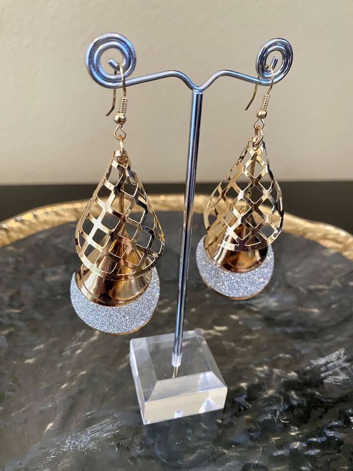 NEW Beautiful Gold Filagree w/ Silver Glitz Dangle Earrings - These are truly special- C ALL PICS. I have a few pair.