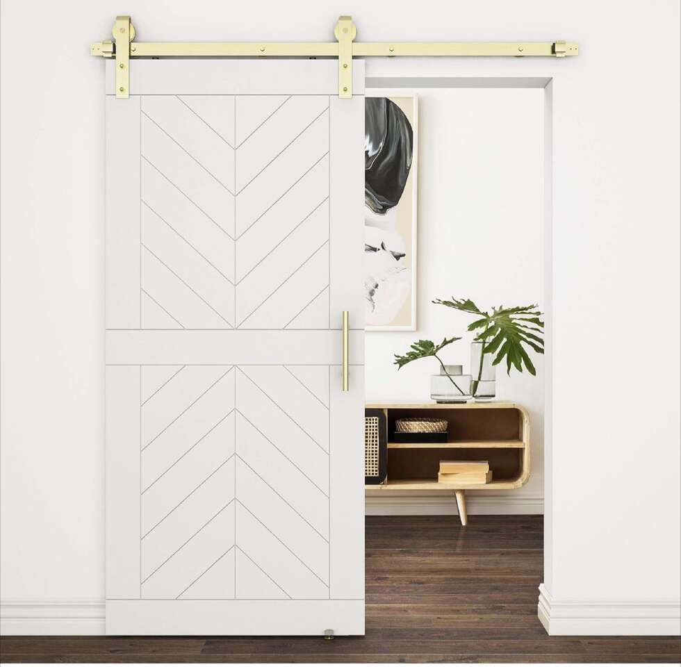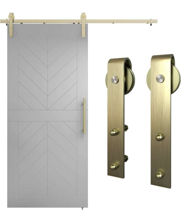 72 in, Brushed Gold N700-006 Interior Sliding Barn Door Hardware One Piece Designer Kit with Soft Close