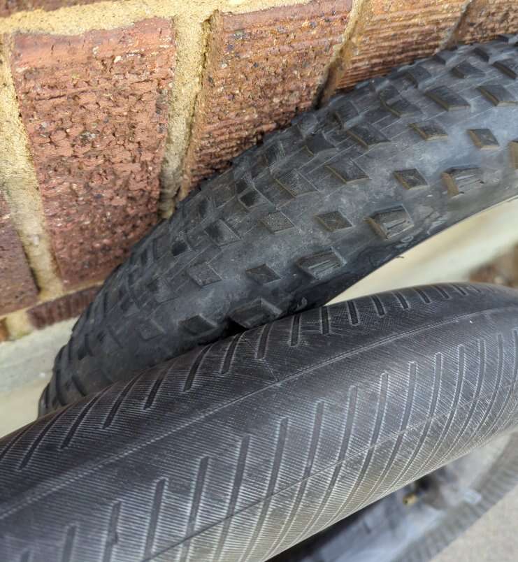Used Radrunner Kenda 20x3.3 tire. I was replacing a worn rear tire and decided to do the front as well, even though it wasn't completely worn. Tire still has a good amount of tread and the inner tube is still in good condition with no patches