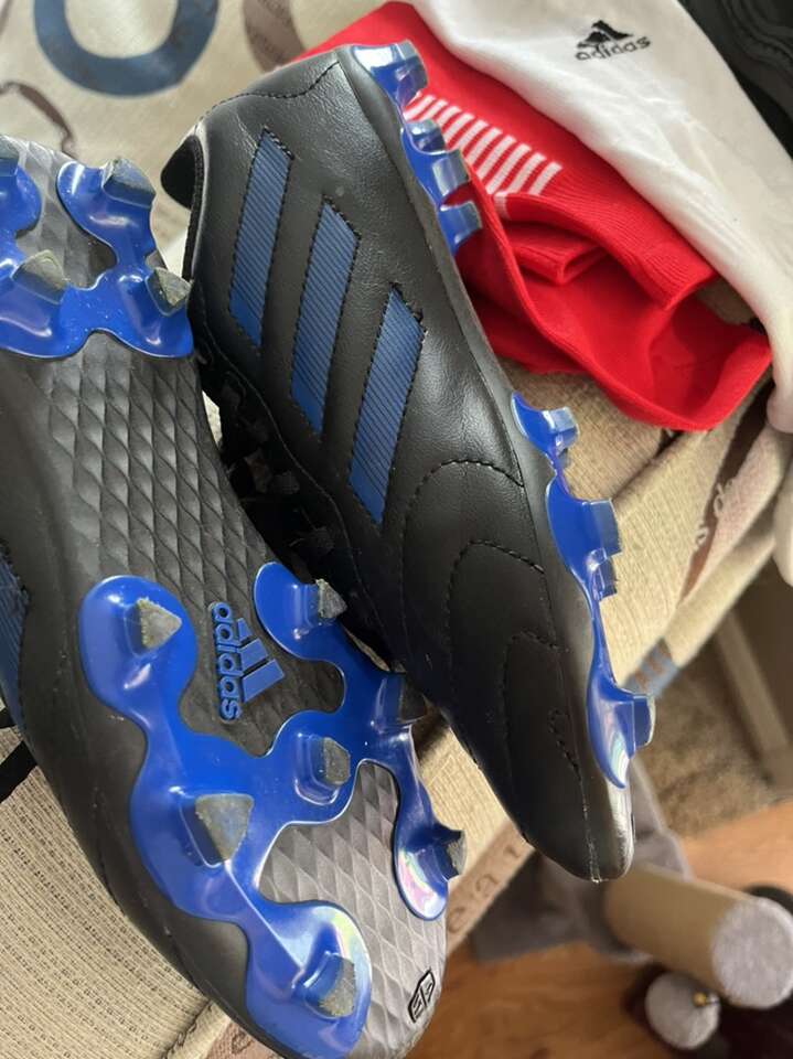 Size 3 1/2, adidas soccer cleats. Only used for half a season still in great condition. 3 pairs soccer socks, one with shins guards. Cash only.