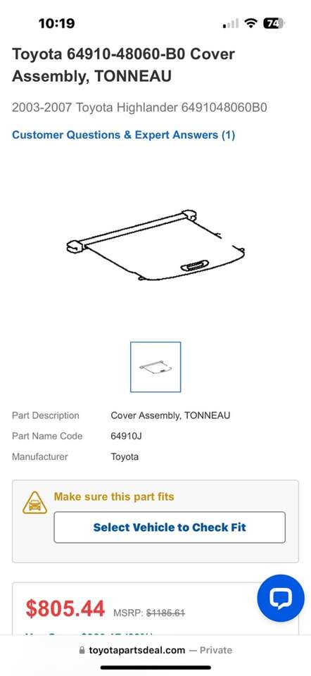 VenmoThis is a cargo cover for a Toyota Highlander. It is OEM and built for 2001-2007 models. Parts number: 64910-48060-B0. The cover was hardly ever used. Has a small brown stain