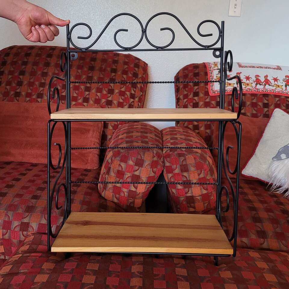 Hanging shelves rustic wooden 29"x17"x9" This peice will hang your hats & keys (see picture of bottom hooks) and hold your treasures too Message if interested! (801)472-2627