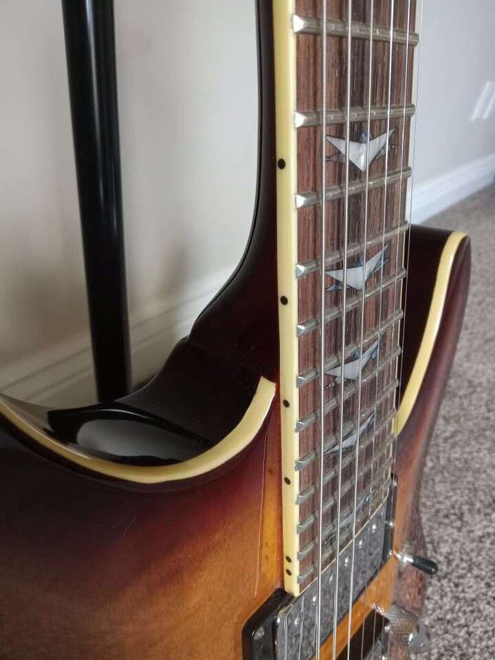 Specs: Made in South Korea Vintage Sunburst Set Neck, Easy Access Mahogany Body, Flame Maple Top Maple Neck Rosewood Fingerboard Vector Inlays Grover Tuners Creme Binding Body, Neck, and Headstock 24 Jumbo Frets Duncan Design Humbuckers Assembled in the USA