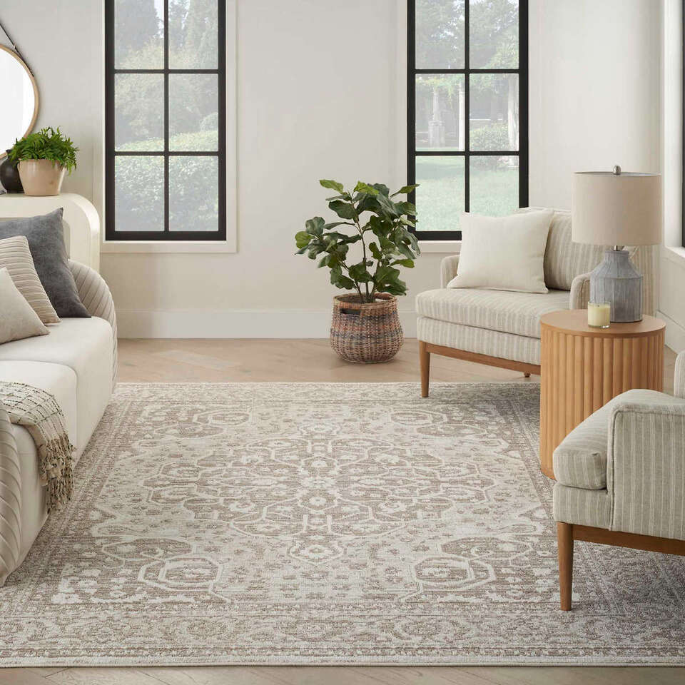 Nourison Reclaimed blends style, practicality, and sustainability into a collection of low-profile rugs that are stunning to look at and easy to maintain. Each pattern is made from recycled polyester yarns that feel great on bare feet, with a dimensional surface texture designed to grab attention. These rugs are OEKO-TEX® certified and GRS Certified free from harmful chemicals, making them ideal for environmentally conscious households.