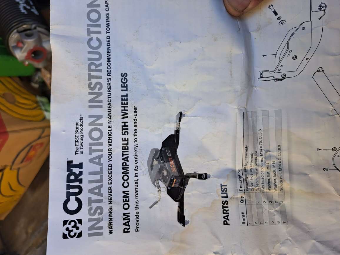 Curt 16021 puck system 5th wheel legs, fits select Ram 2500 & 3500, 8' ft bed, 25000 gross trailer weight, compatible whit curt hitch heads 16515, 16520, 16530, 16540, 16545, 16565, condition new without factory packaging never been used, DO A LITTLE RESEARCH TO MAKE SURE IT IS COMPATIBLE WHIT YOUR PICKUP, $350.00