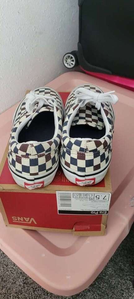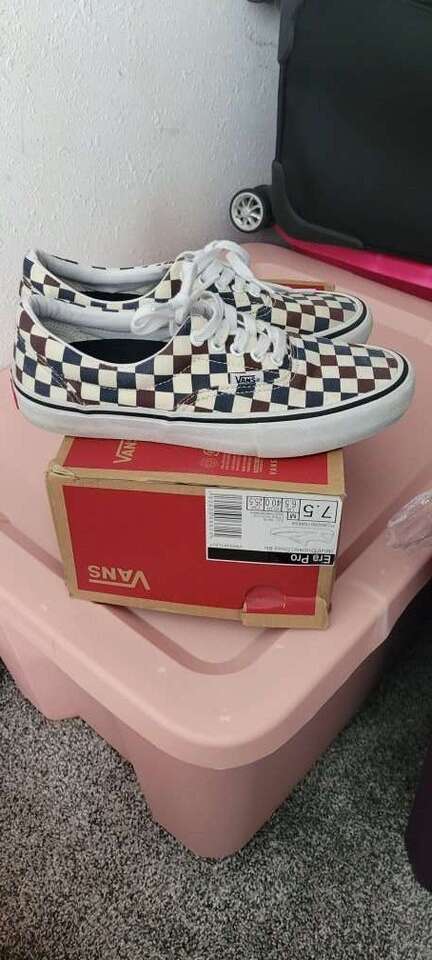 Vans Era Pro Multi Checkered Blue Brown Mens 7.5 in great condition from a smoke pet free home comes with new navy blue shoe laces.