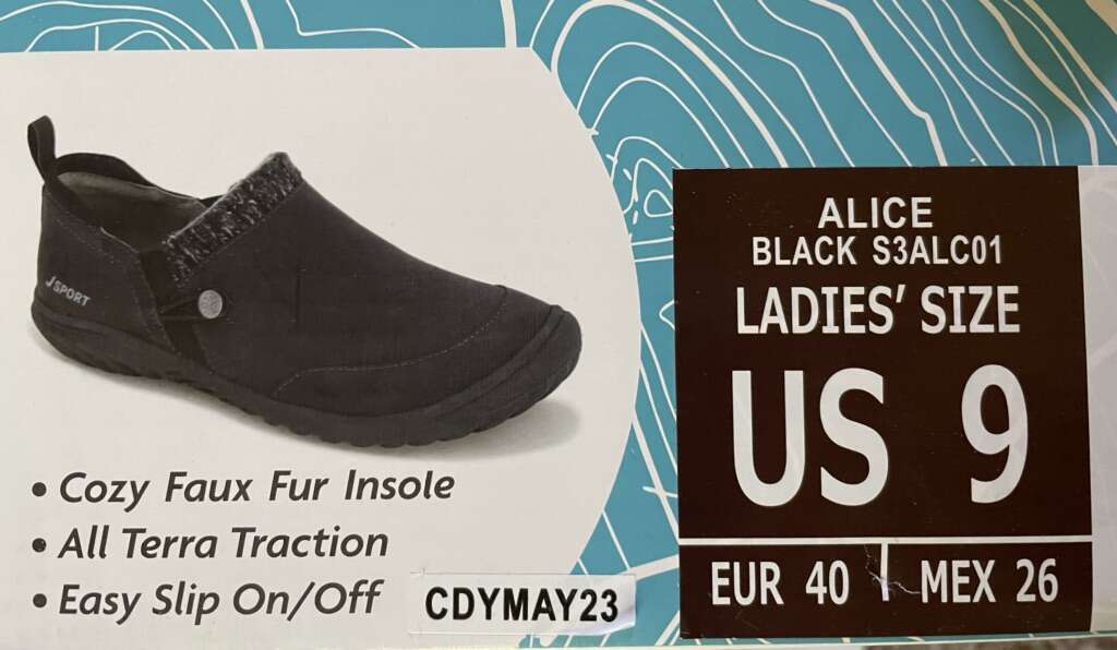 New with box, Jsport women Slip On, All Terra Traction, Cozy Faux Fur insole, size 9.