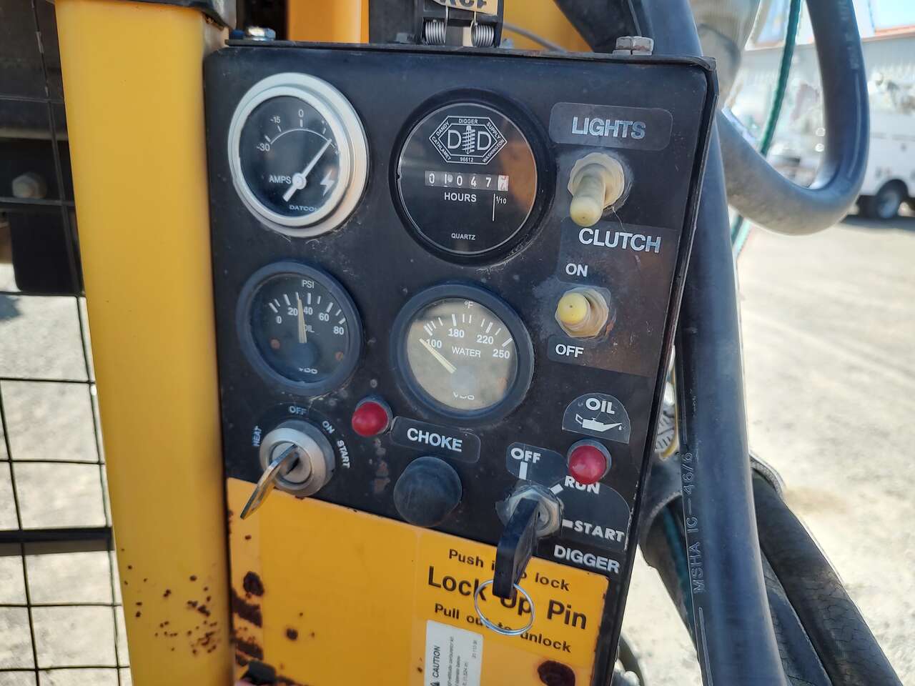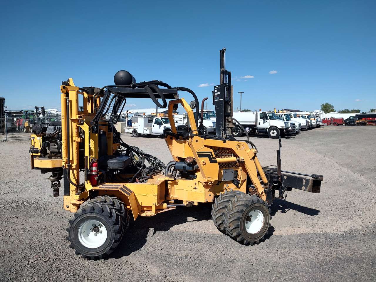 Dandy Digger All Terrain Fencing Machine, 3 cylinder Kubota diesel engine, 1,042 hour, 25 horsepower Vanguard gas engine for the post hole digger, articulated all wheel drive, adjustable front post pounder for up to three inch diameter, good tires, former municipal unit