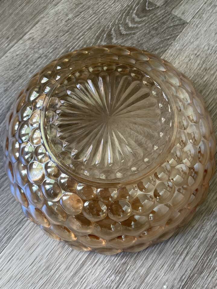 Vintage Depression Glass Anchor Hocking peach Bubble Serving Fruit Bowl 8” Dish