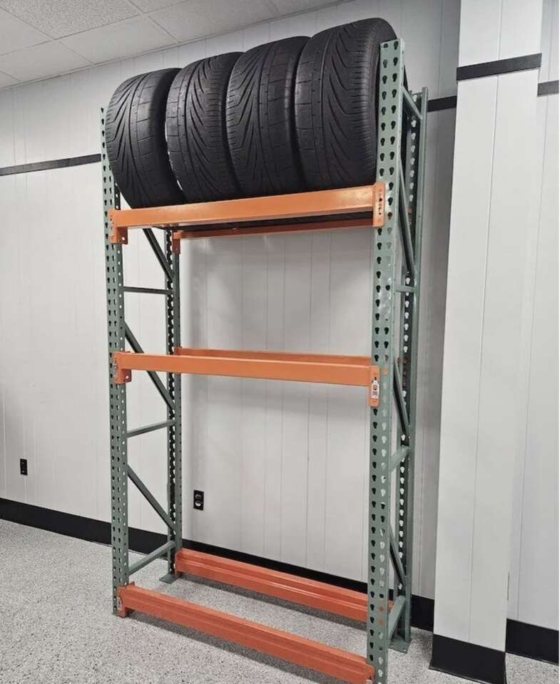 We are a full service pallet racking dealer. We just recently started offering tire racking to our customers! This type of shelving is extremely beneficial to tire shops, or even personal use if you store tires to change out year round. Below is the following options we have available. It is very customizable and more than likely can be built to fit any size space.