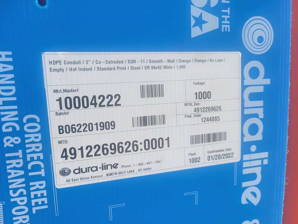 I have 12 spools of BRAND NEW, never been used, 3" SDR11 conduit (can be used as pipe), in 1,000' spools. Sold by the spool at $2,500 per spool, $2.50 per foot. These are the solid orange spools.