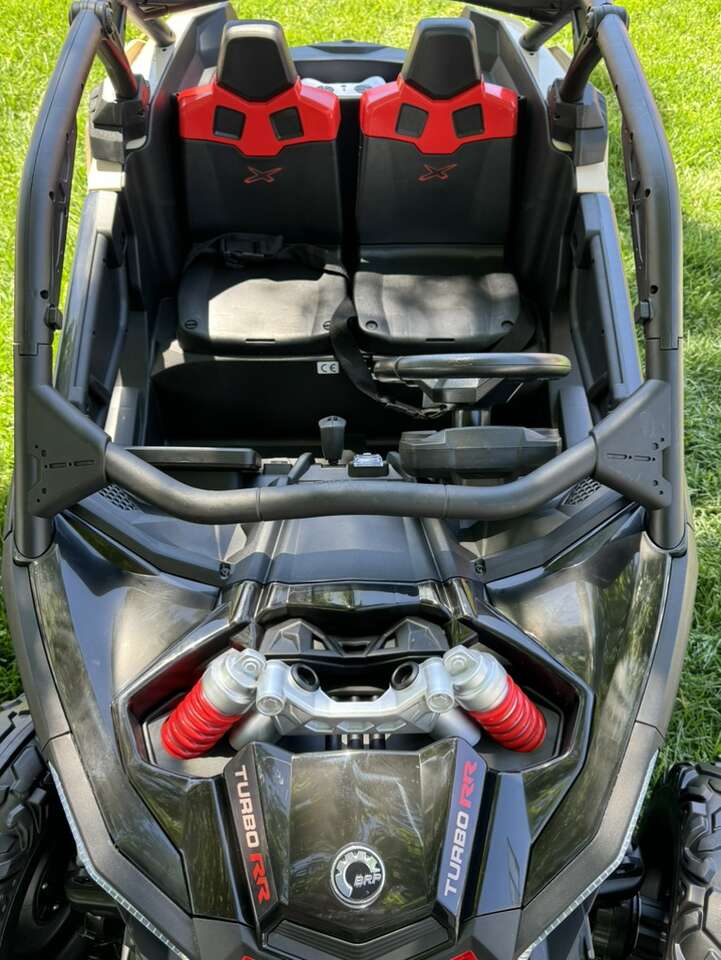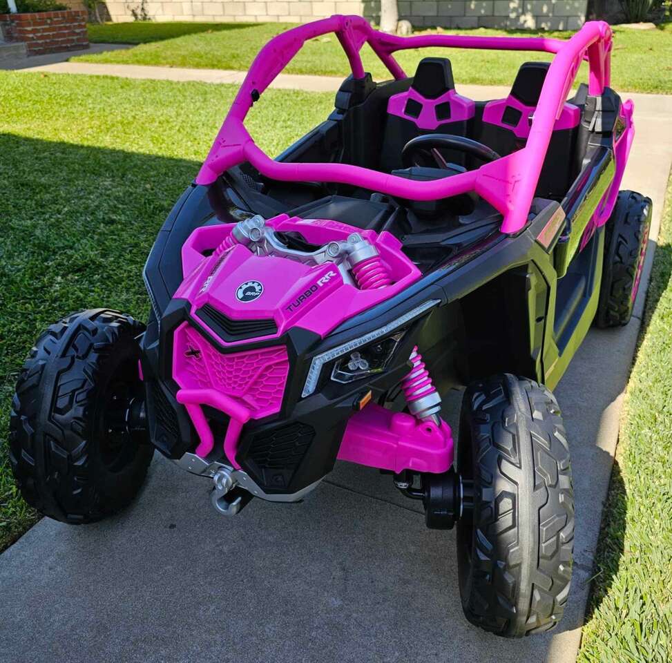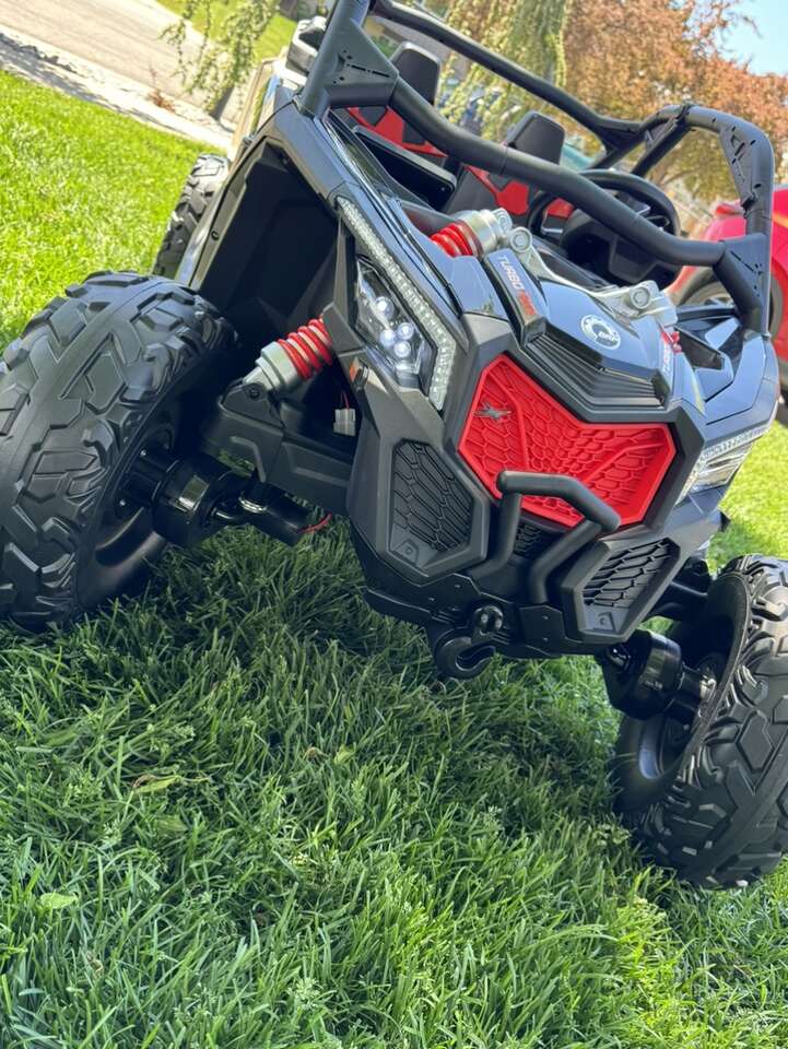 Available in 4 different colors (Black,Blue,Pink,Orange) 4X4 (4 powerful upgraded 200 watt motors ) Spring suspension 200lb Weight Capacity EVA RUBBER TIRES BLUETOOTH with speakers 2 seater ADJUSTABLE seat Adjustable seat belts LED Front headlights Rear LED tailghts Includes Remote control for parental control and also has a pedal for manual driving. 6 Month manufacturer warranty (*90 days on batteries and charger)