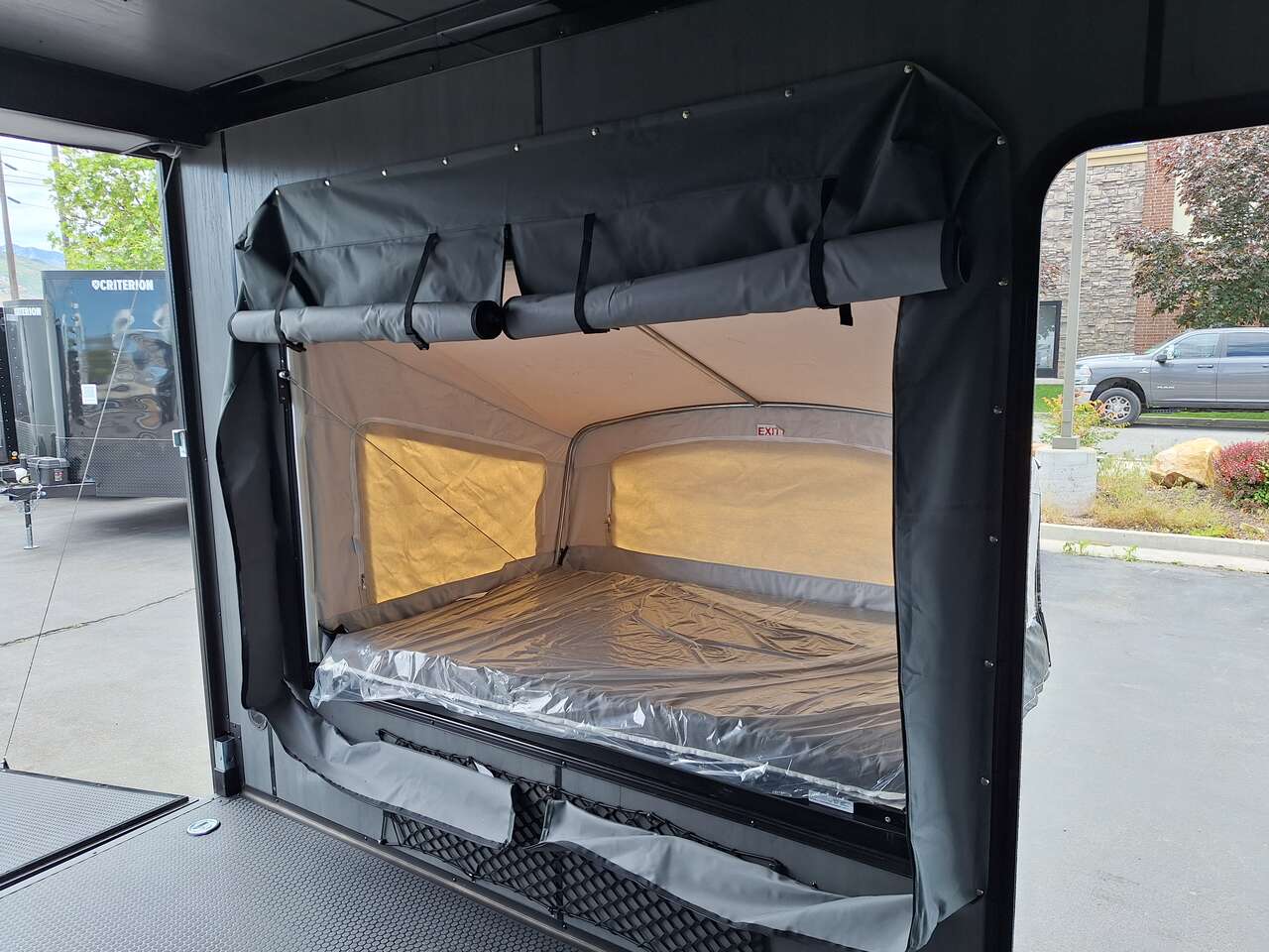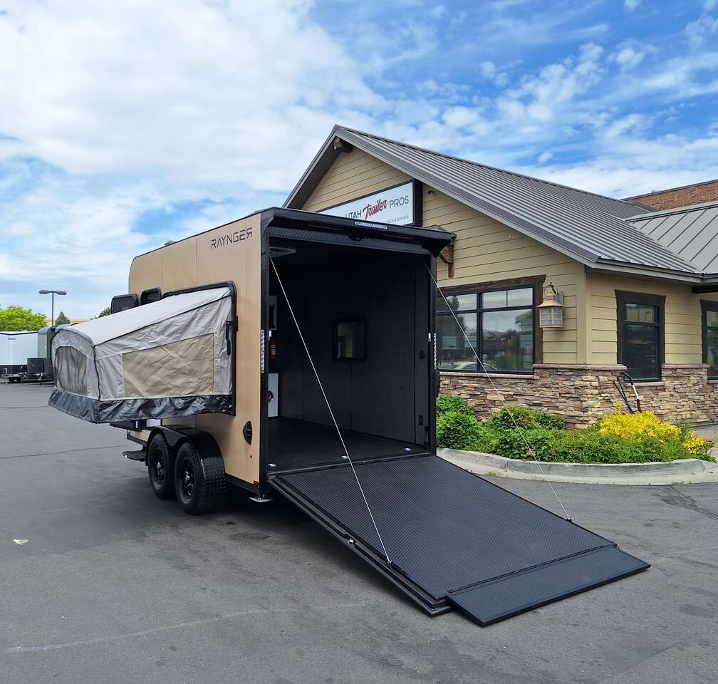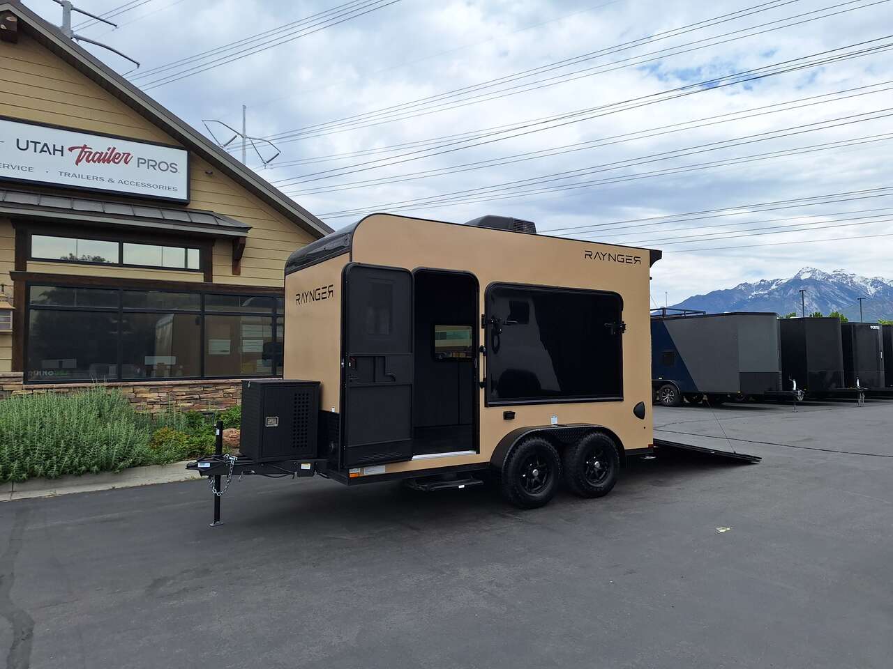 LIMITED TIME $154 A MONTH WITH ZERO DOWN WITH OUR SPECIAL LOCAL CREDIT UNION PARTNER!!! NO PRE-PAYMENT PENALTIES!!! NEW 2025 MODEL!!! RAYNGER PREMIUM OFF ROAD TOY HAULER CAMPER!!! 19 INCH GROUND CLEARANCE!!! OFF ROAD TIRES!!! FULLY INSULATED!!! HEATING AND A/C!!! WET SOUND STEREO!!! FOLD OUT/POP OUT TENT WITH MATTRESS!!! 84 Inch Rear Entry Height/87 INCH INTERIOR HEIGHT!!! 77 Inch Rear Entry Width!!! Aluminum Ventilated Locking Generator Box!!! UPGRADED TORSION AXLES!!! 11.1 Foot Long Garage Space!!! And Much MUCH MORE!!! Check out our Specs!!! Also available in 18 foot models. 18 Foot Models can have 3 Fold Out Beds/Pop Out Tents. 16 Foot and 18 Foot Models will fit ANY stock 4 Seater Side by Side • 6” I Beam Frame• Flat Top Design• Flat Front Design• Wall Posts 16” on Center• Cross Members 16” on Center• Roof Bows 16” on Center• Rust Inhibiting Z-Tech Protection on Chassis• Ameraguard on Tongue• Ameraguard on Rear Bumper• Ameraguard Around All Door Openings and Stepwell• Ameraguard Around Edges of Ramp Door• 3500 LB Spring Axles• 2-5/16” Coupler• One-Piece Aluminum Roof• ST235/75R15 Aluminum Wheels with Chrome Center Caps• 2000# Ramp Door with Eberhard Latch• 30” Tempered Glass RV Door with Screen Door• .030 Exterior Metal with Screwless Sides• 24” Black Stoneguard• 3” Black Bottom Trim• Sand Pad• Black Door Hold• 2.7mm Charcoal Textured Vinyl Ceiling • 9mm Charcoal Textured Vinyl Walls• 3/4” Engineered Wood Floor with Rubber Coin Overlay• (6) 1200 LB Floor D rings Installed with Backer Plates• LED Clearance Lights and Tail Lights• LED Back-up Lights• No Show Wheel Box• Spoiler with Toggle Switch• RV Step• 7’ Interior• (2) 17” Chrome Base Lights with Switch• (1) Black 17” Spot Light with Switch• (1) 30 Amp Panel with Marine Plug• A/C Unit with Heat Strip• (3) Interior Recepts• (1) Exterior Recept• 12V Battery and Charge Line• Prep for Backup Camera• Wet Sounds System• (3) Blue Interior Cabinet Lights• (1) 6’ Section of Flex Lights• Black ATP Rear Header and Hoop• Black ATP Fenders• Insulated Walls & Ceiling• Base Cabinets• Overhead Cabinets with Netting Over Compartments• Pop Out Tent• Black ATP Storage/Generator Box Mounted On Tongue