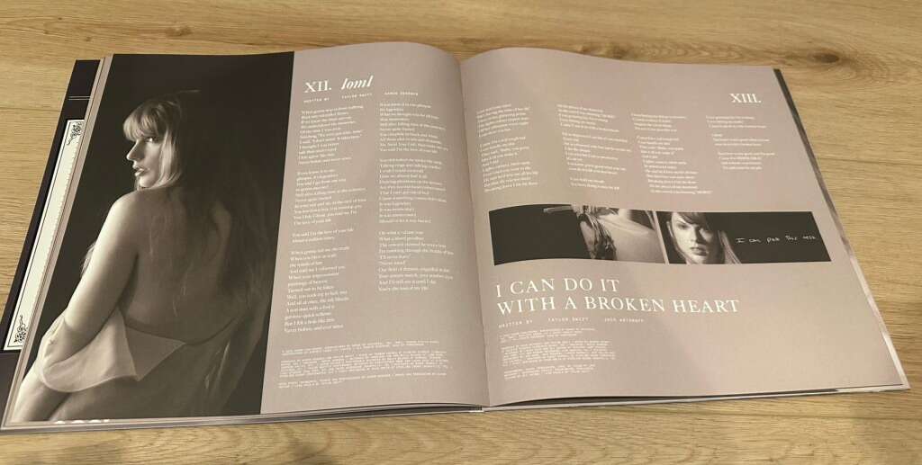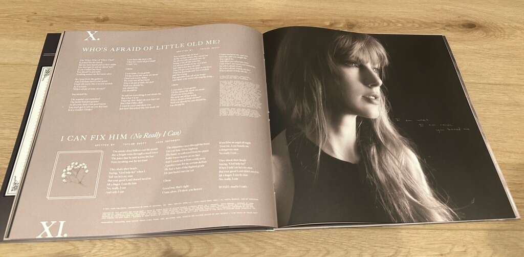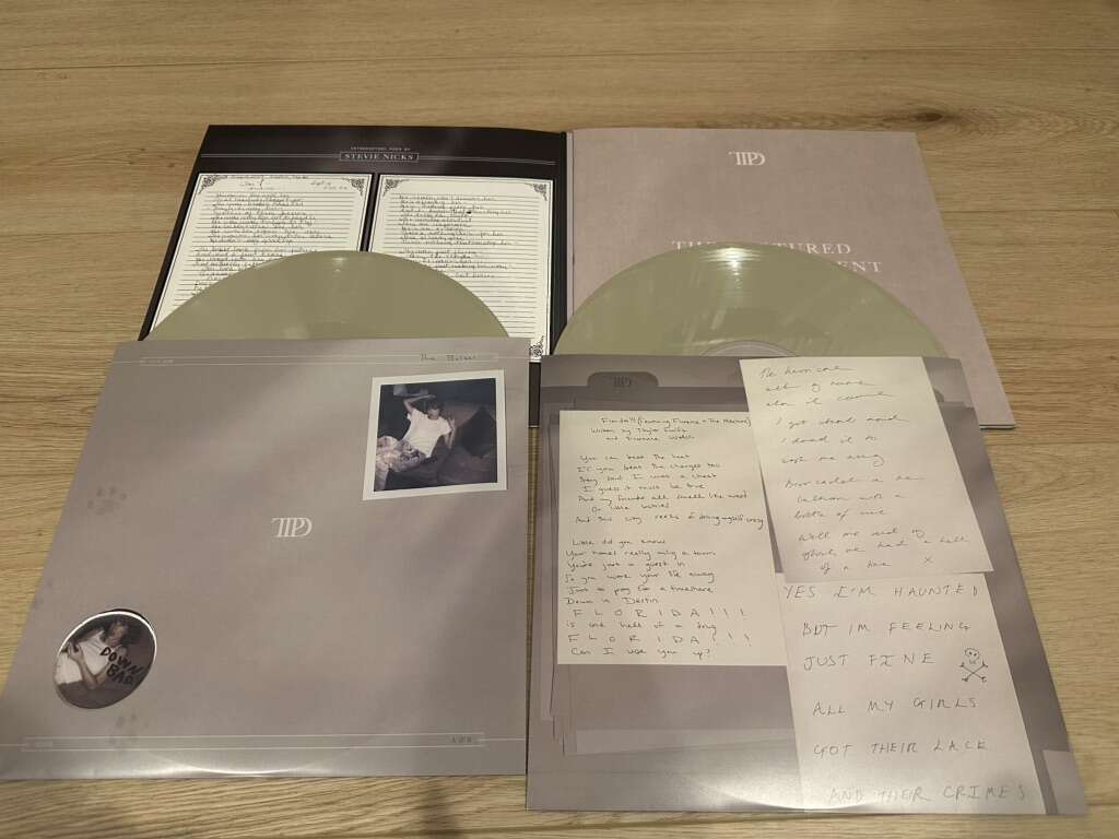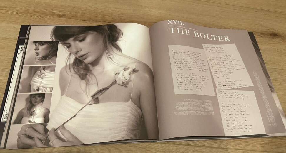 16 Tracks + Bonus Track The Bolter Collectible 24-page book-bound jacket with three replicas of Taylor Swift's handwritten lyrics unique to this vinyl and never-before-seen photos 2 Parchment Beige vinyl discs Collectible album sleeves including never-before-seen photos