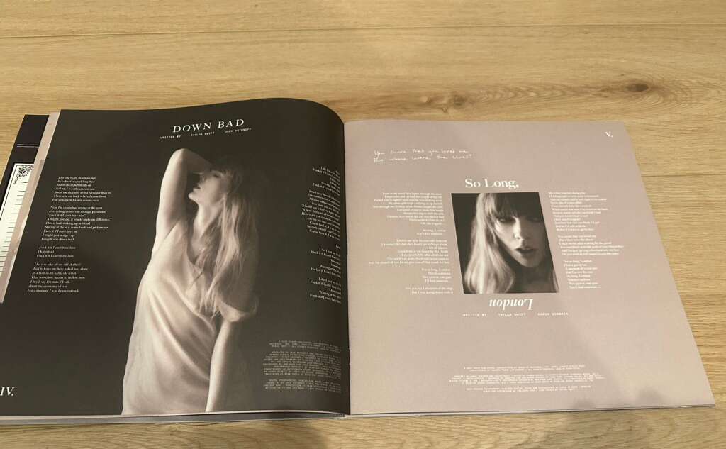 Taylor Swift's The Tortured Poets Department vinyl album “The Bolter” version. The one I am selling is sealed, brand new, and still in the plastic. The one I have in my collection is the one that is pictured when out of the package. I included those just to show you what you would get. This album comes in four different versions and this one is called “The Bolter” because it comes with that bonus track. It comes with 2 vinyl discs in the color “Parchment Beige.” This version was only available on her website for around 48-72 hours making it a must-have for collectors. The Bolter album has a specific cover that goes with its version and the back is also unique. It has a 24-page book bound jacket with unique photos and 3 hand written lyrics. I am a vinyl collector and this is seriously one of the coolest and most detail oriented albums I have ever seen. That’s why I took pictures of the entire book bound jacket. It’s incredible. One of my favorites to look at while listening to the album. It’s amazing. Any Swiftie would go nuts! All the info broken down: