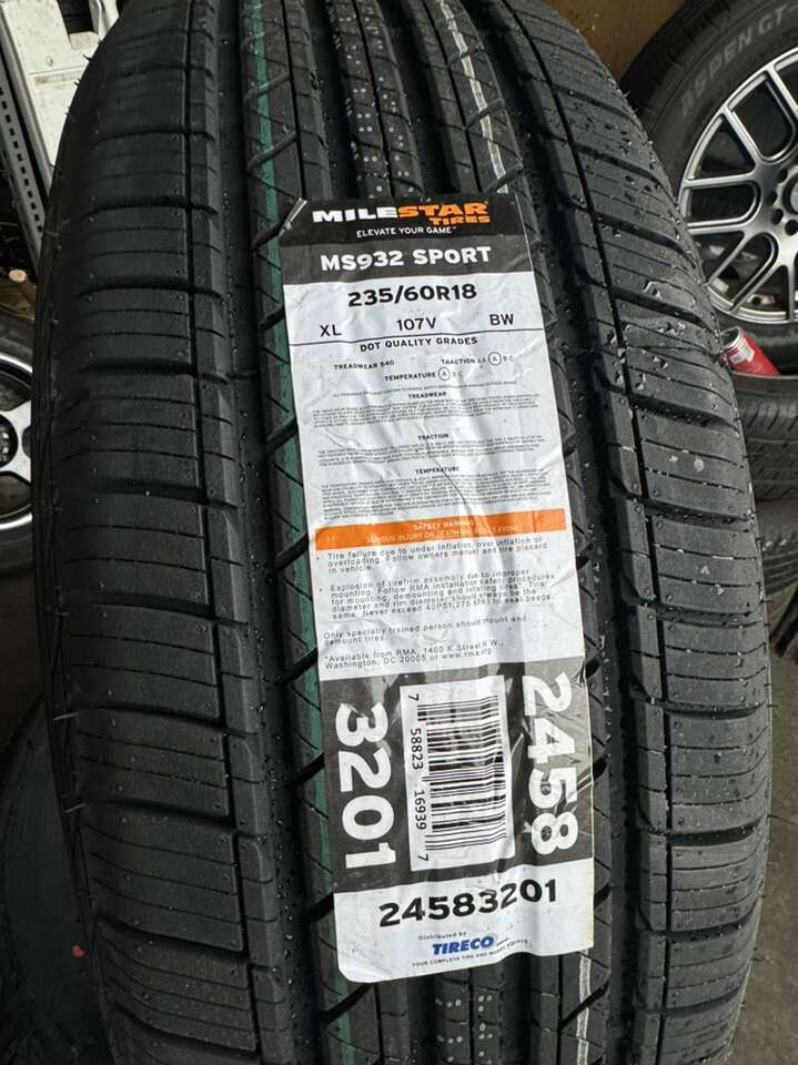 Brand new set of MILESTAR MS932 SPORT. Size 235/60R18. 45k MILES WARRANTY. Free mount, balance, and brand new valve stems. MILTECH TECNOLOGY. High Life $500+tax 90 day financing available through Acima, message for details. Also make sure to check out our google reviews just search “Oliver tires” We carry a lot of other tire sizes new and used. As well as used and new wheels. If you have any questions call or text. English; 8018656726 Espańol; 8016885139 Office: 8016620227. Or visit us at 3010 west 500 south. Salt Lake City Utah. Shop #11