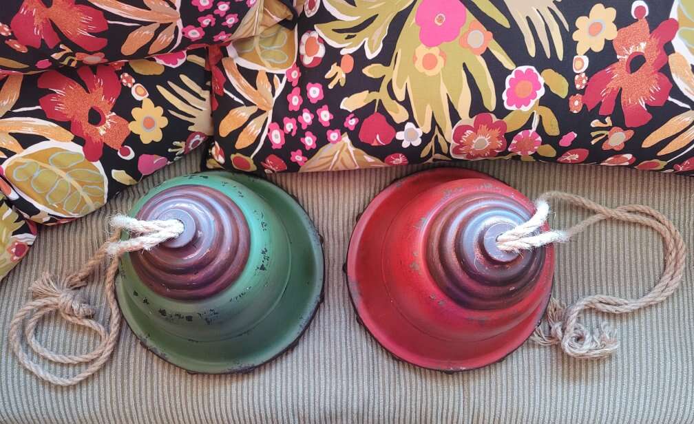 Retro Vintage Holiday Christmas New Year's bells 13"x13" light metal Yes, they chime Message anytime! (801)472-2627