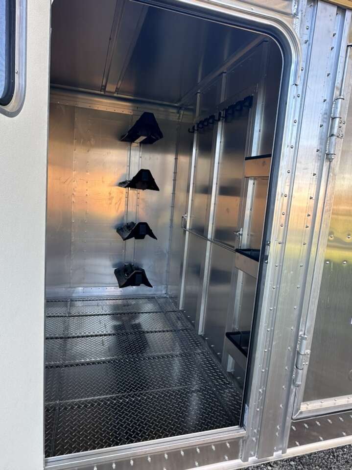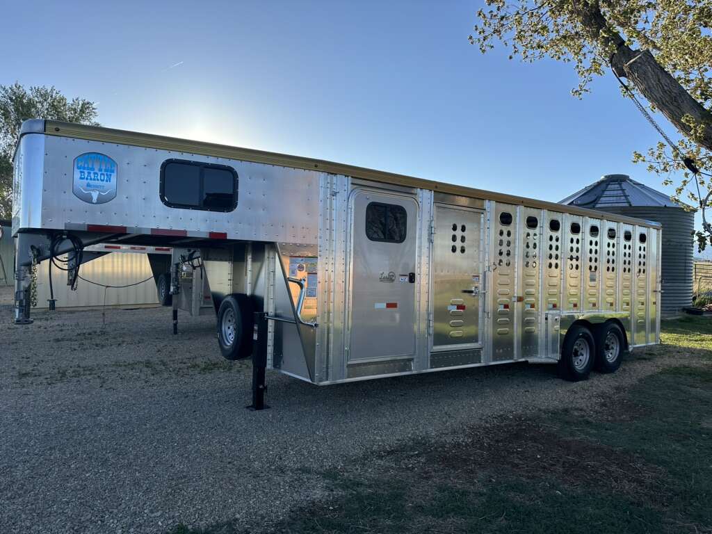 ****SOLD ****SOLD but can order. Brand New With Warranty 24x7 Merritt Lariat Goldline Stock Combo Trailer. This one is loaded up with extra lights, goldline package, floor mats, interior nose gate, interior divider gate, shelves in tack area, extra set of tail lights, interior and exterior tie loops for horses. Etc….This is the best price out there, especially when the additional options are considered!