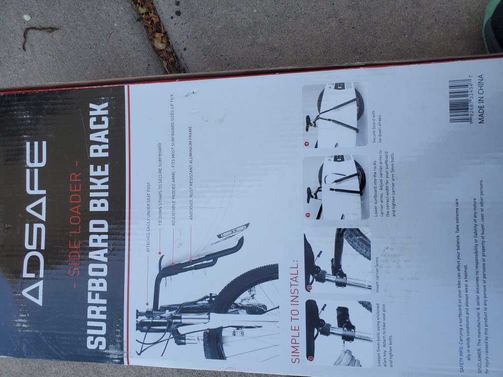 easily attaches under bicycle seat post. tie down straps to secure surf board, adjustable padded arms, rust resistant.