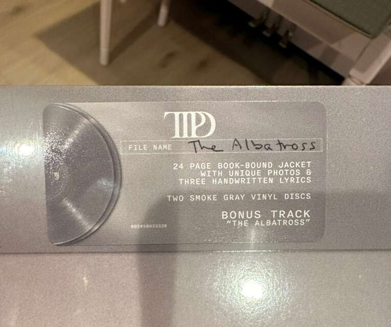 Taylor Swift's The Tortured Poets Department vinyl album “The Albatross” version. The one I am selling is sealed, brand new, and still in the plastic. The one I have in my collection is the one that is pictured when out of the package. I included those just to show you what you would get. This album comes in four different versions and this one is called “The Albatross” because it comes with that bonus track. It comes with 2 vinyl discs in the color “Smoke Gray.” This version was only available on her website for around 48-72 hours making it a must-have for collectors. The Albatross album has a specific cover that goes with its version and the back is also unique. It has a 24-page book bound jacket with unique photos and 3 hand written lyrics. I am a vinyl collector and this is seriously one of the coolest and most detail oriented albums I have ever seen. That’s why I took pictures of the entire book bound jacket. It’s incredible. One of my favorites to look at while listening to the album. It’s amazing. Any Swiftie would go nuts! All the info broken down: