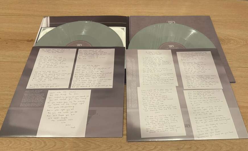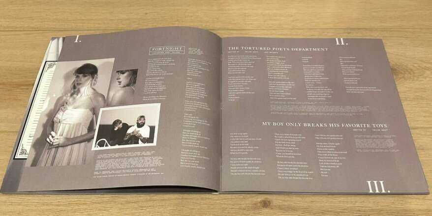 16 Tracks + Bonus Track The Albatross Collectible 24-page book-bound jacket with three replicas of Taylor Swift's handwritten lyrics unique to this vinyl and never-before-seen photos 2 Smoke Gray vinyl discs Collectible album sleeves including never-before-seen photos