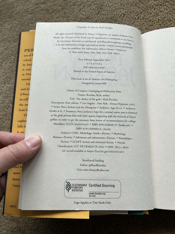 Percy Jackson and the Olympians: The Chalice of the Gods, by Rick Riordan. Percy, Annabeth, and Grover’s first adventure together since The Lightning Thief. Barnes & Noble exclusive (includes special content). 2023, 268 pages. Hardcover in very good condition, including dust jacket. Text only. Cash or Venmo.