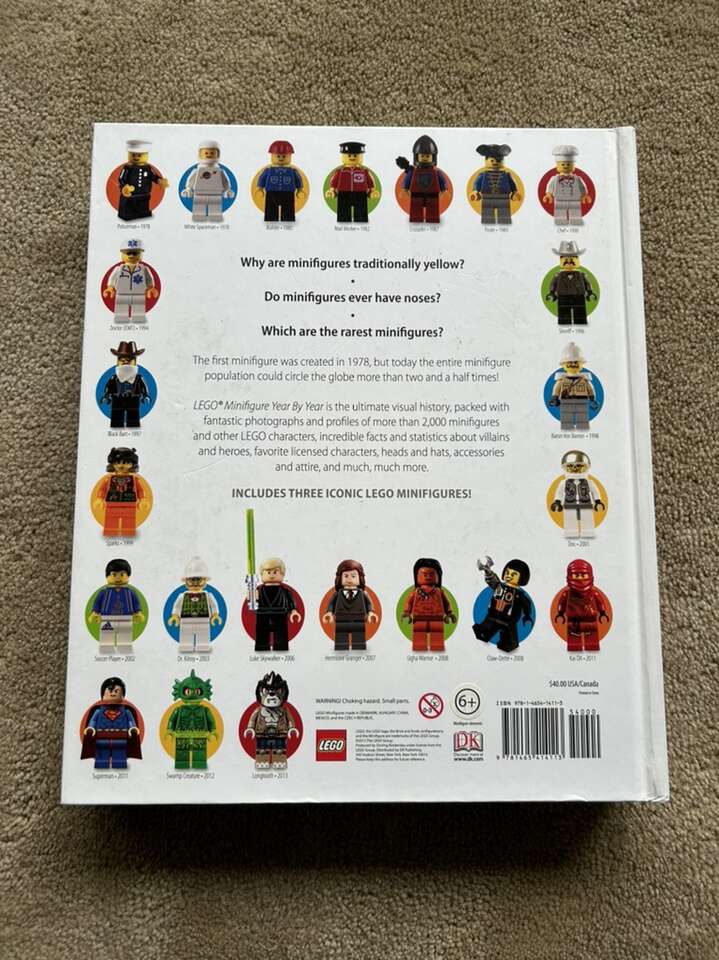 LEGO Minifigure Year by Year: A Visual History. Includes 3 new minifigures! DK, 2013, 255 pages. Giant hardcover in excellent condition. Text only. Cash or Venmo.