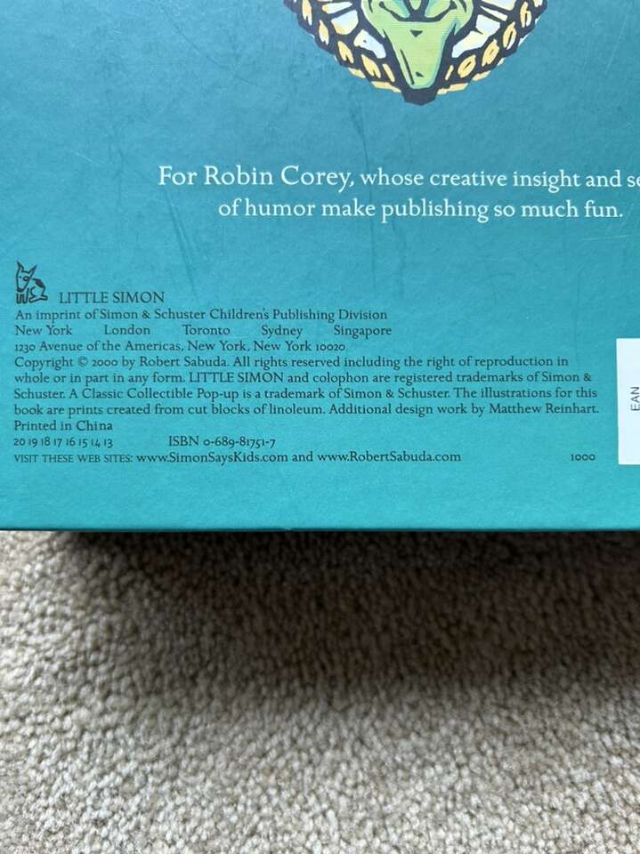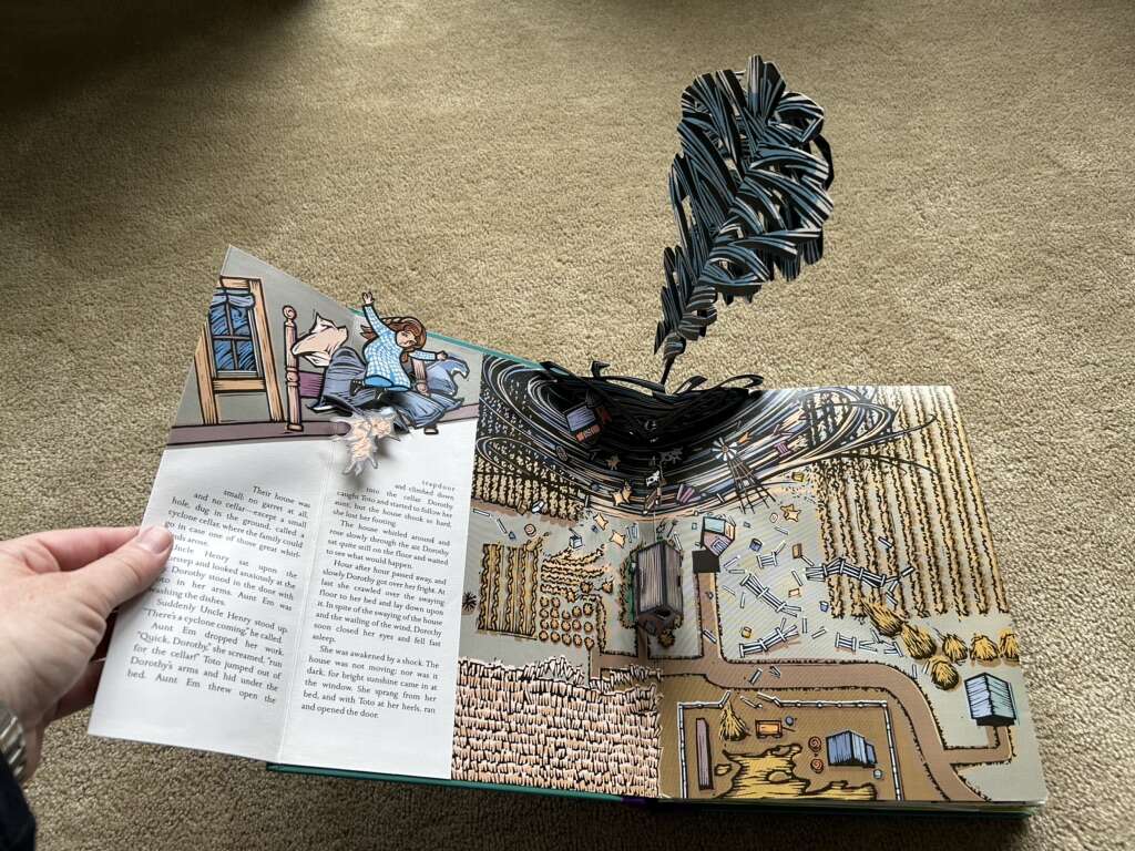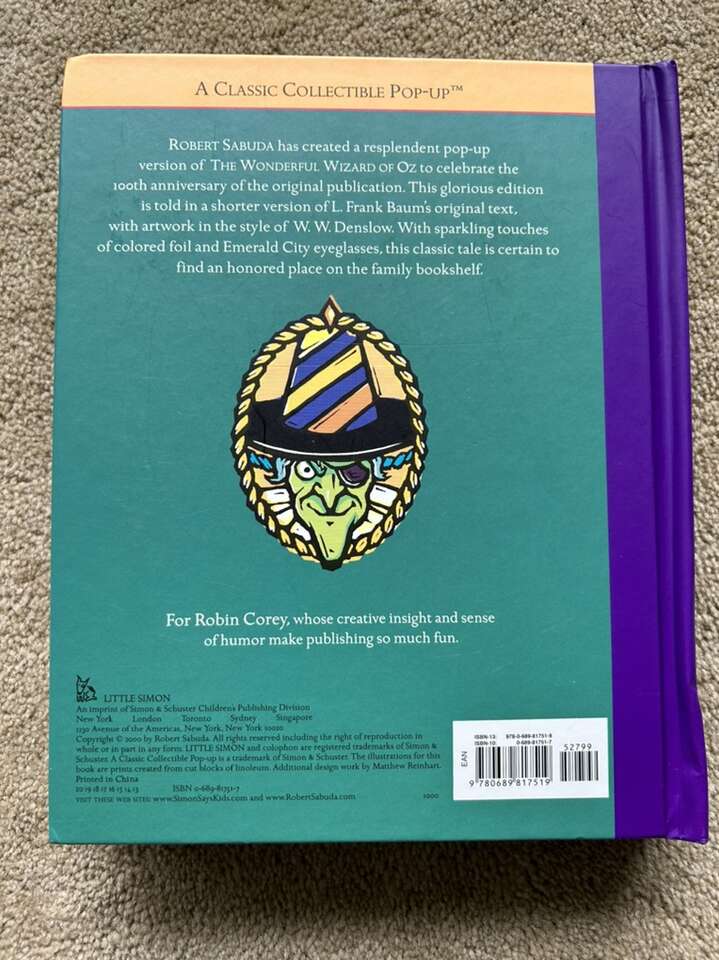 The Wonderful Wizard of Oz: a commemorative pop-up adaptation of L. Frank Baum’s original story by Robert Sabuda. Beautiful oversized book with colorful, intricate paper creations on each page. All pop-ups function. Very good condition. Text only. Cash or Venmo.