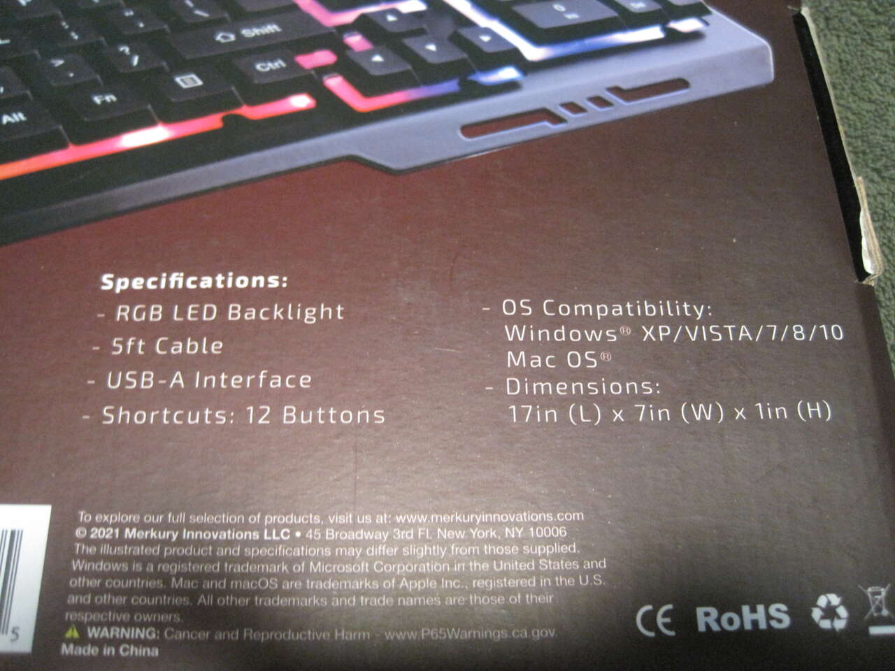 Elevate your gaming experience with the Tactical RGB LED Backlit Gaming USB Metal Keyboard by Evo Core. This keyboard boasts a sleek black design and a QWERTY layout for standard typing ease. The illuminated keys enhance visibility, while the enhanced function keys allow for quick access to important commands. With plug and play functionality and USB connectivity, this keyboard is perfect for both PC and Mac OS. Its portability allows for easy transport to LAN parties or gaming competitions. Don't let your keyboard hold you back, upgrade to the Tactical RGB LED Backlit Gaming USB Metal Keyboard by Evo Core.