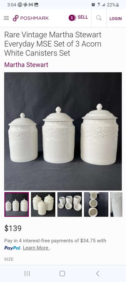 Rare Vintage Martha Stewart Everyday MSE Set of 3 Acorn White Canisters Set. $50, compare at $139.00