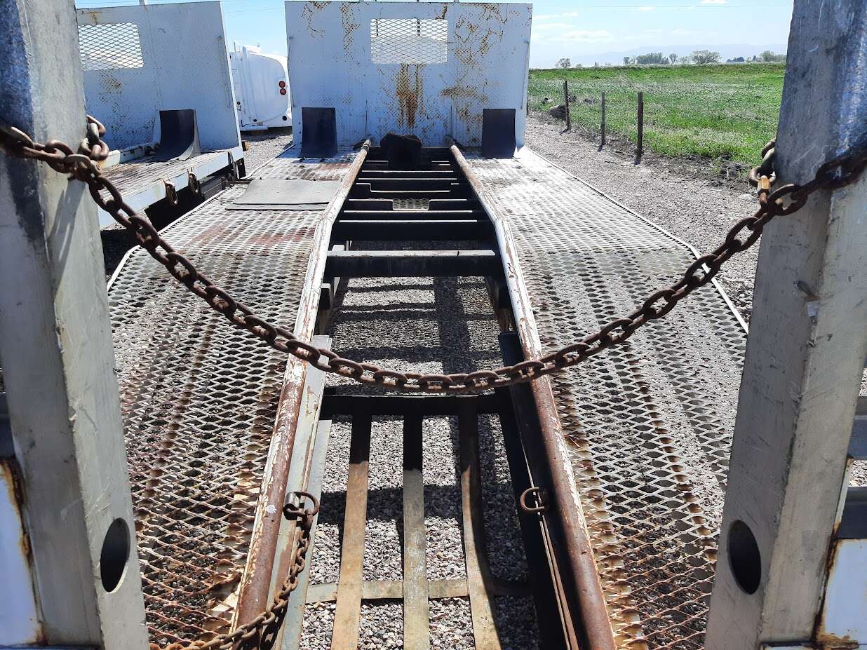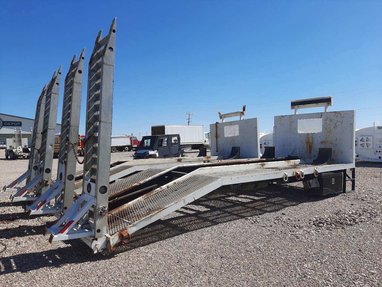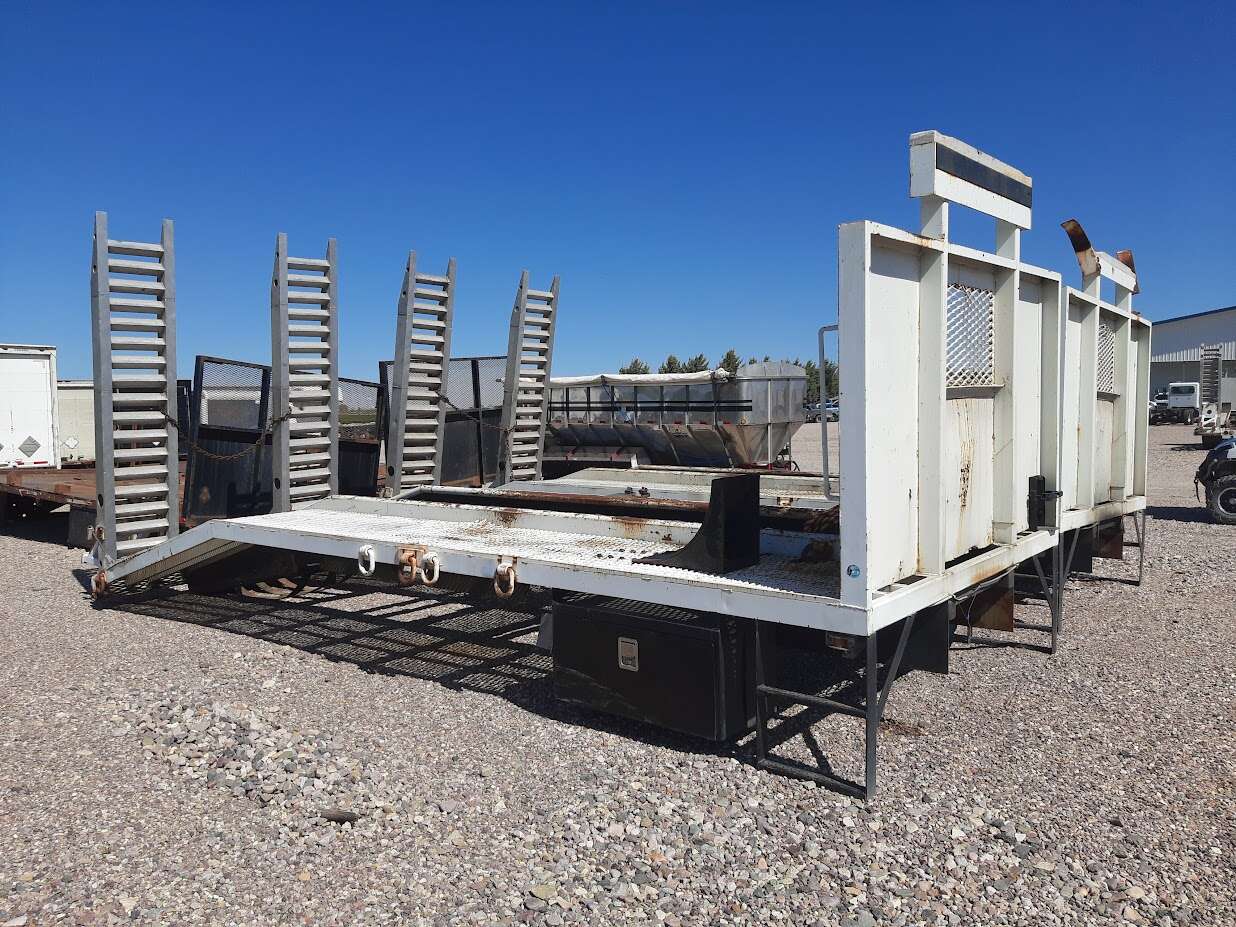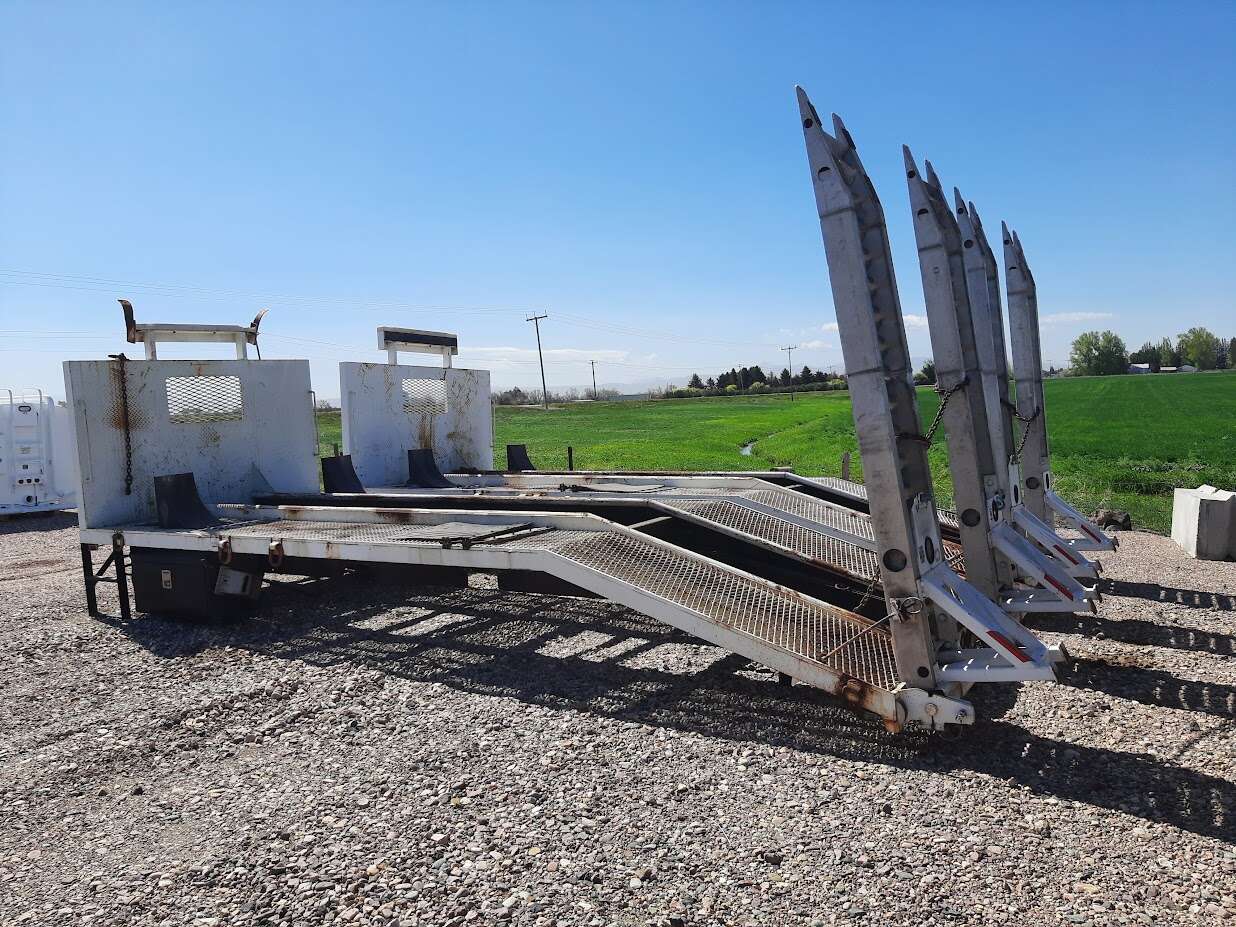 22' x 96" Back Hoe body, 15' Upper deck, 6' Fixed ramps, 9' Aluminum fold down ramps, Tool boxes, Fixed headboard, 2 identical to choose from