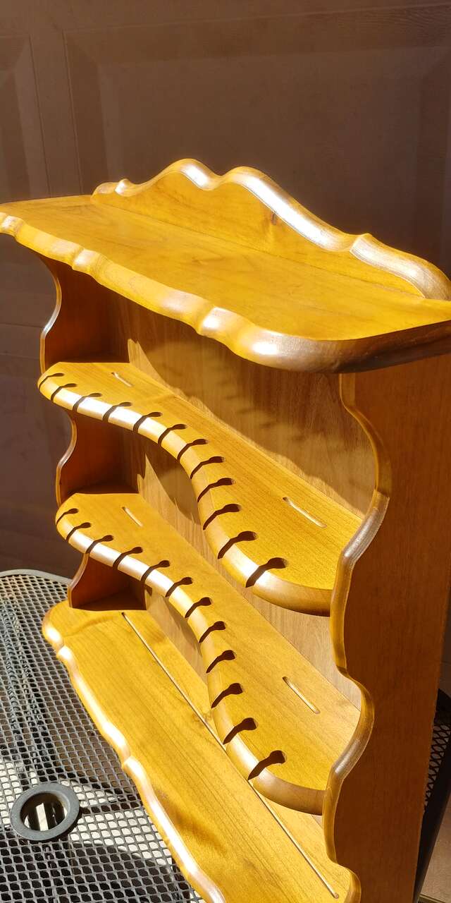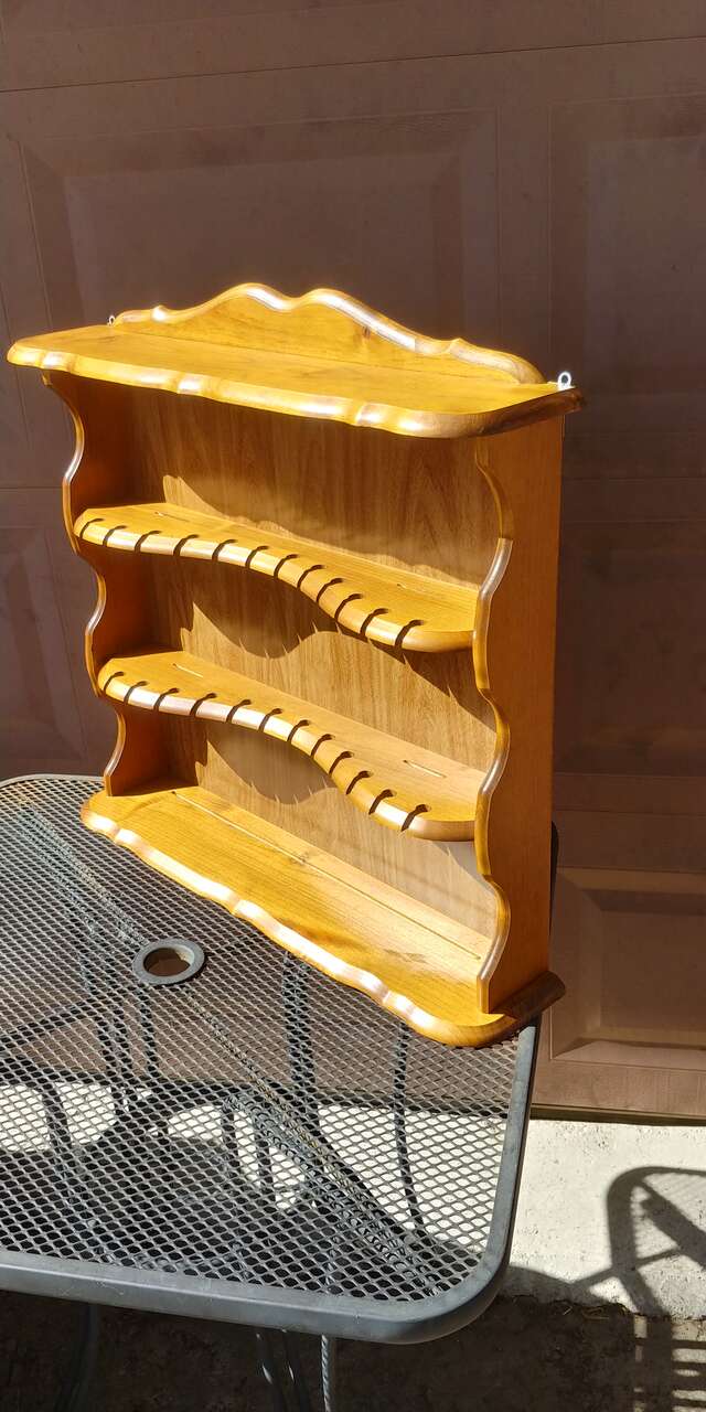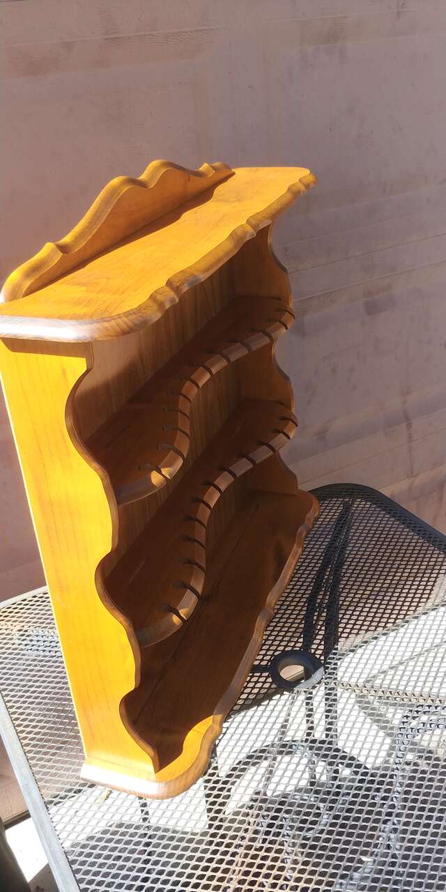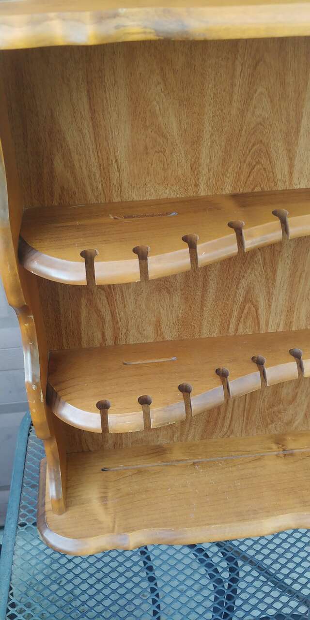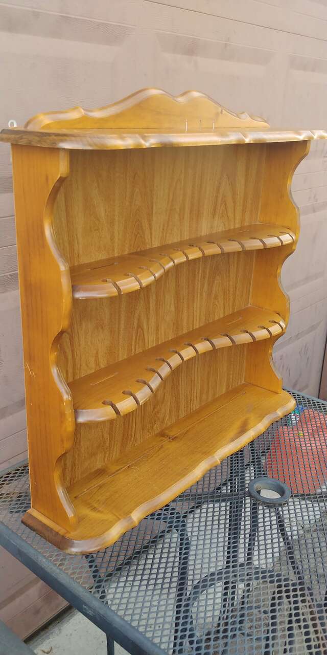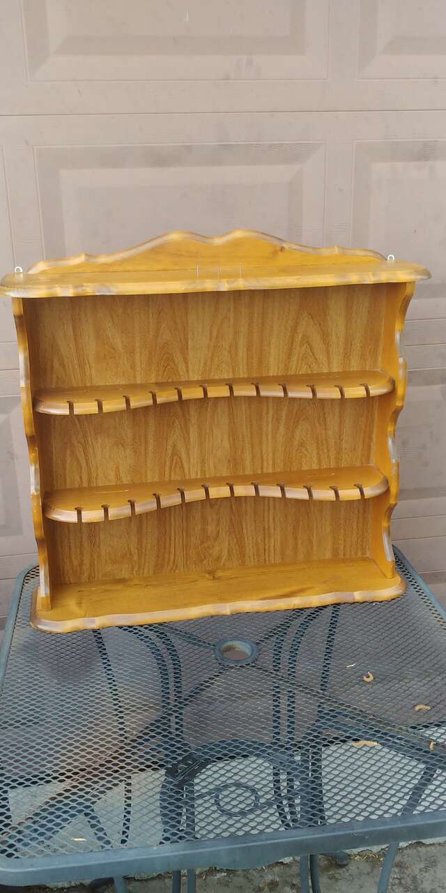 Venmo4 shelfs. Originally designed for spoons and plates. Great for jewelry or small knick knacks. Good condition. Size 25.25 wide 24 high. Shelves between 2.5 and 5 inches deep.