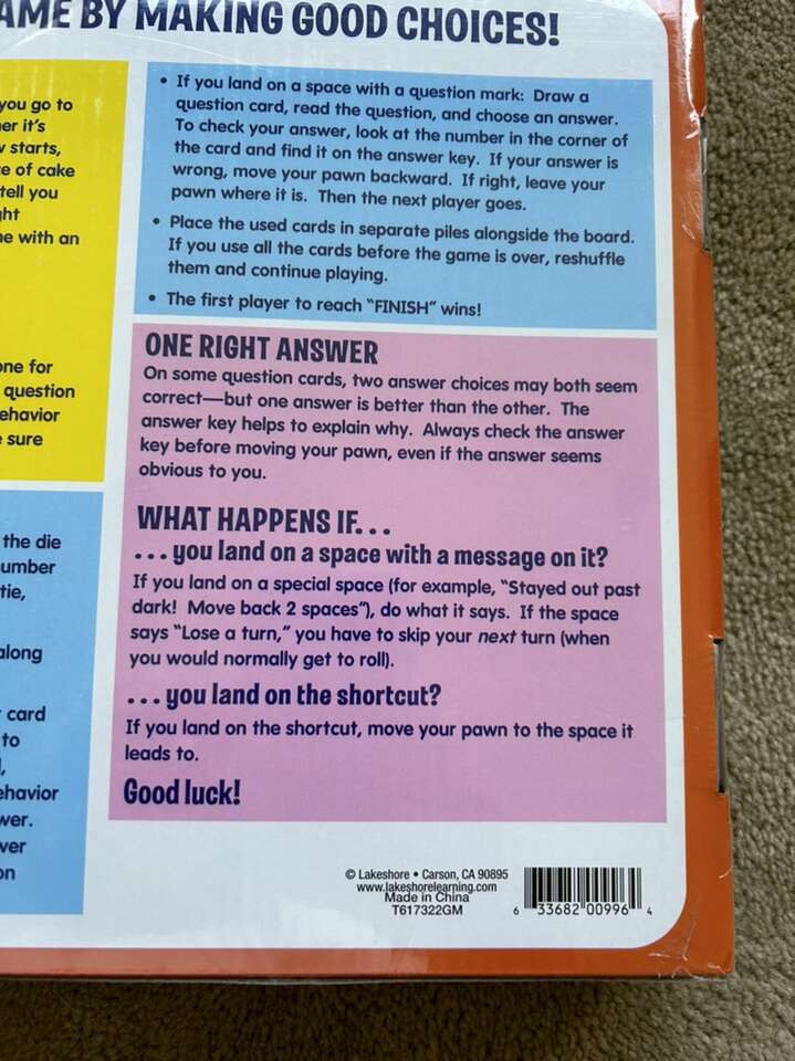 NEW (sealed in plastic) What Should You Do? A game of consequences. By Lakeshore Learning, ages 5+, 2-4 players. New, unopened condition. Text only. Cash or Venmo.