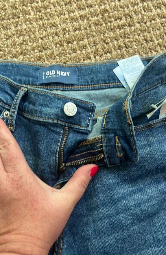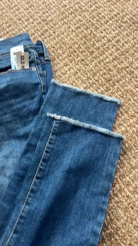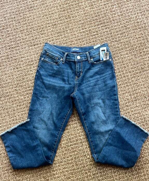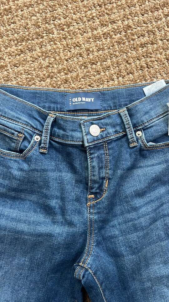 Brand new with tags Slim fit Distressed at ankle Blue Hip pockets Back pockets Button and zipper closure Belt loops Adjustable waist Size 12 girls 98% cotton 2% spandex Smoke and pet free home