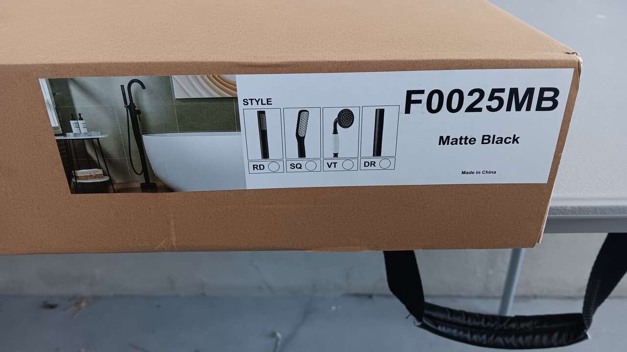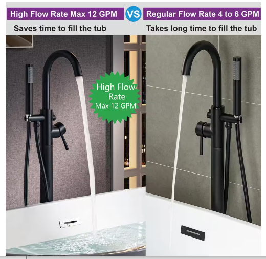 View More Details at https://www.homedepot.com/p/WOODBRIDGE-Derby-Single-Handle-Freestanding-Floor-Mount-Tub-Filler-Faucet-with-Hand-Shower-in-Matte-Black-F1048/316261643#overlay