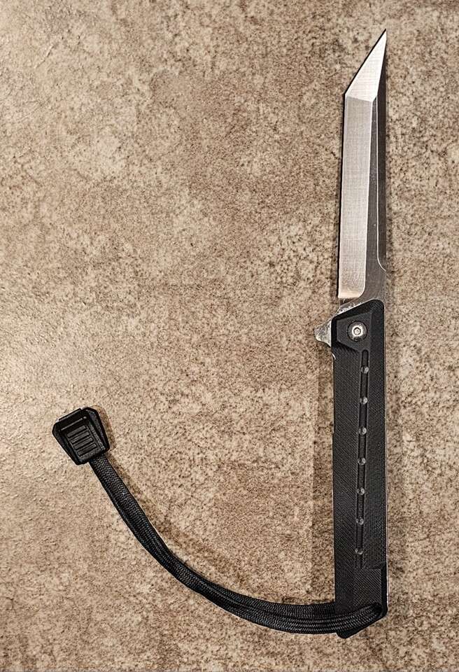FOR SALE: A high-quality unbranded G10 EDC folding one finger flipper knife. This knife is an unbranded version of multiple name brand knives, including Tactical Gearz. Ball bearing pivot. D2 stainless steel Tanto blade. G10 Handle. Amazon sells these for $36.98. Includes a durable nylon belt sheath and paracord lanyard. The paracord is strandless and easily stows in a pocket for bulkfree storage.