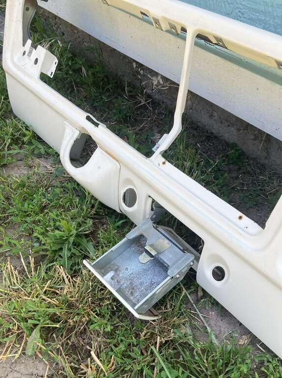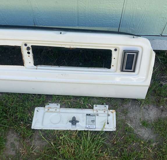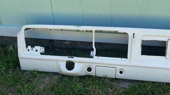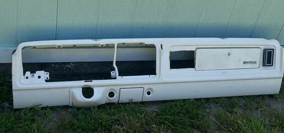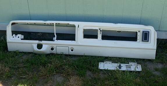 FORD F150/F250/F350/BRONCO1973-79 front dash metal panel color white with original glove box door and cigarette ashtray pre-owned in good condition