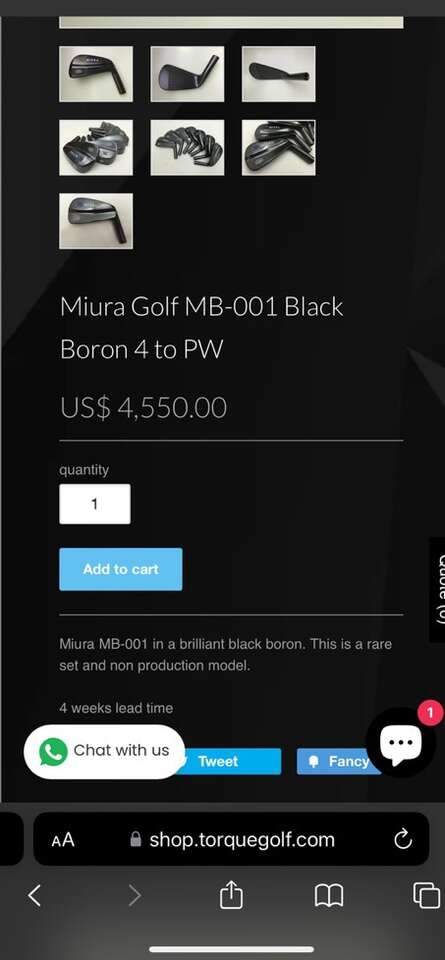 Price lowered to bottom for off season special. Firm here. Reluctantly parting with my collectors set of Miura irons. Absolutely beautiful irons that must be seen in person to appreciate! These are the special edition non production boron MB001 5-P beautifully paired with special edition black boron coated MC501 4 and 5 iron. Dynamic gold s300 stiff shafts with MC align grips. Only seen maybe 4-5 rounds total on destination courses and a handful of range sessions. The coating wear is primarily from taking the covers on and off and then cleaning the irons with a towel after shots, the color of the coating looks great in person (the lighting in the pics make it look worse than it is)… that said these are in phenomenal shape with hardly any wear, the grooves are like new. By far the best feeling iron when pured, absolutely nothing else compares to these…. This special edition blacked out boron coating is a collectors edition for Miura enthusiasts so these will always retain their value or appreciate accordingly. However, these aren’t untouched so ready to see the course without guilt… The mb001 is no longer made and was the pride of Miura founder, Katsuhiro Miura, and his sons (who is no longer hand making the clubs) and would have been involved in forging these. The price reflects the collectors nature and condition of this set. I’m not in a rush to sell but will let them go to the next Miura enthusiast, who will understand the asking price.