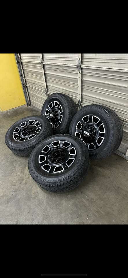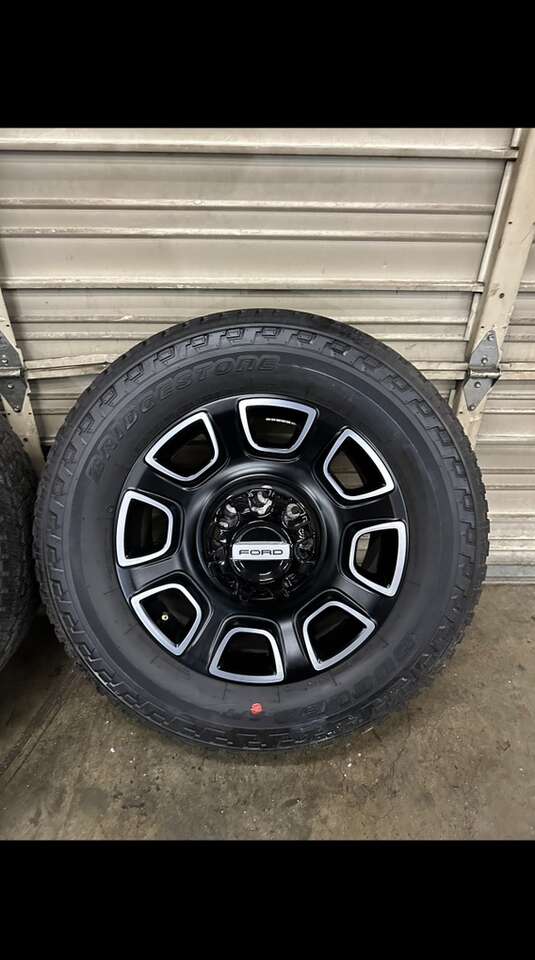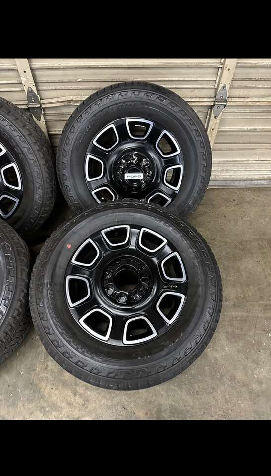Wheels are 20” OEM wheels off a 2024 ford f350 platinum edition. Wheels are in perfect condition, no curb rash dings or damage on them. Amazing looking wheels, all center caps are also included and in amazing condition as well. Tires are 275/65/20 Bridgestone dueler a/t, load range E, 10ply, top of the line tires. No patches or plugs, tires where only driven on for 20 miles from the dealership to the tire shop, so they are brand new.