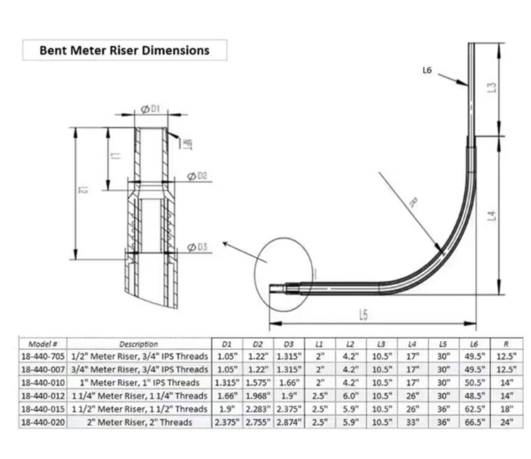 Description The HOME-FLEX underground in. Meter Riser allows to safely and easily transition from polyethylene pipe to a gas meter. MIP on the metal side for direct connection to the meter, no adapters needed. Durable metal construction ensures no damage will occur to pipe above the surface.