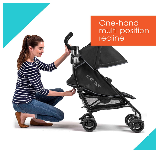 LIGHTWEIGHT: The stroller has an aluminum frame & weighs only 14 pounds. It has a one-hand, multi-position adjustable recline seat with a 5-point safety harness.