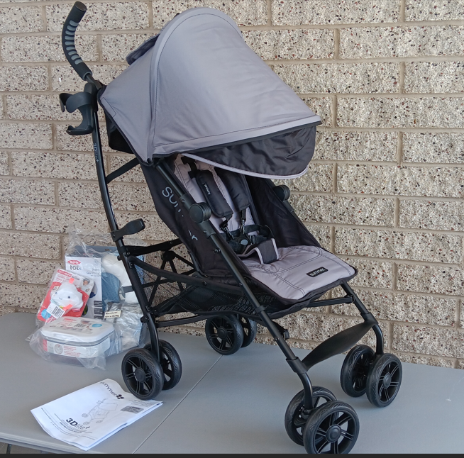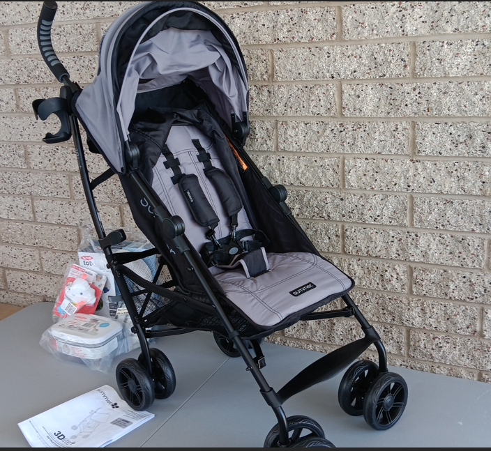 (1) Summer 3Dlite+ Convenience Stroller, Matte Black PLUS: (1) Evenflo Stroller Weather Shield & Rain Cover, Universal Fit, (1) OXO travel potty, (1) Skip Hop Rain Cloud Rattle, & (1) Skip Hop Refillable Wipes Box
