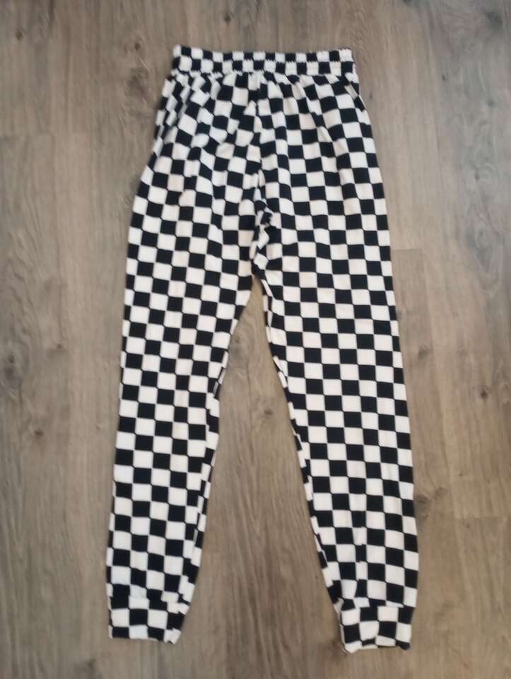 Used black & white checkerboard jogger pants. Elastic waist and pockets. Says Juniors size Large but I'd say these fit more like a medium. In clean and good condition and from a pet and smoke-free home. $8 cash or Venmo..will hold with Venmo. Text if interested.