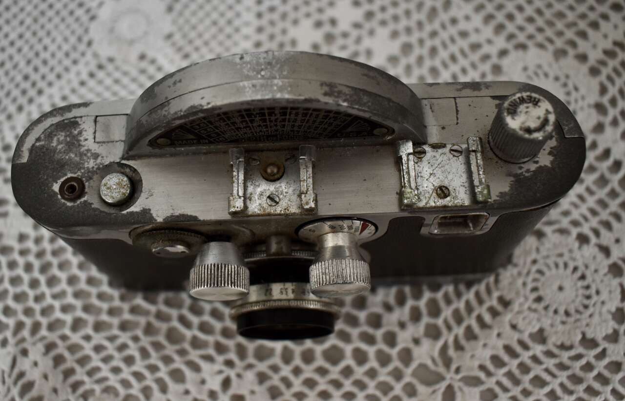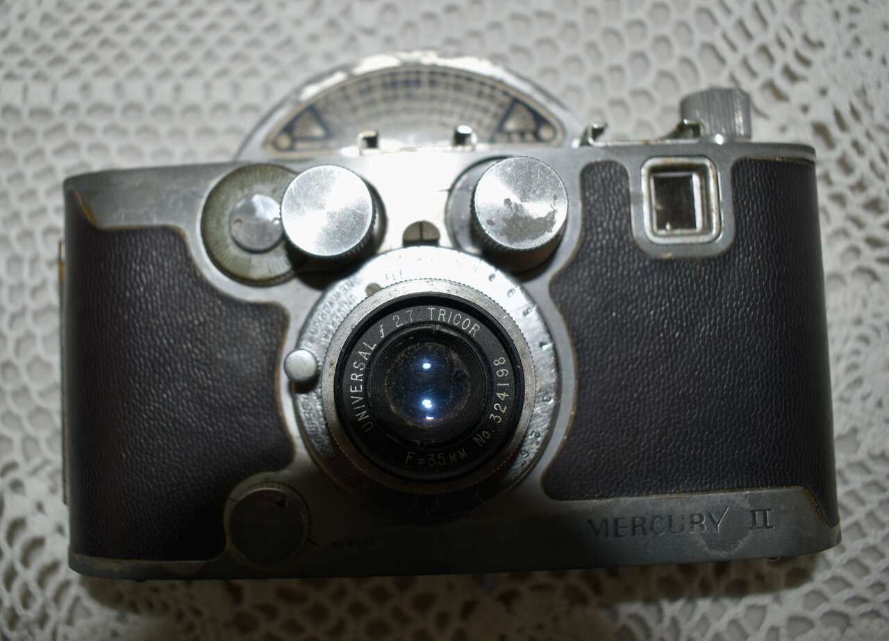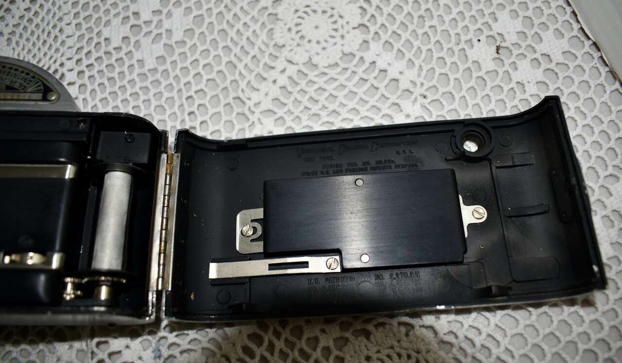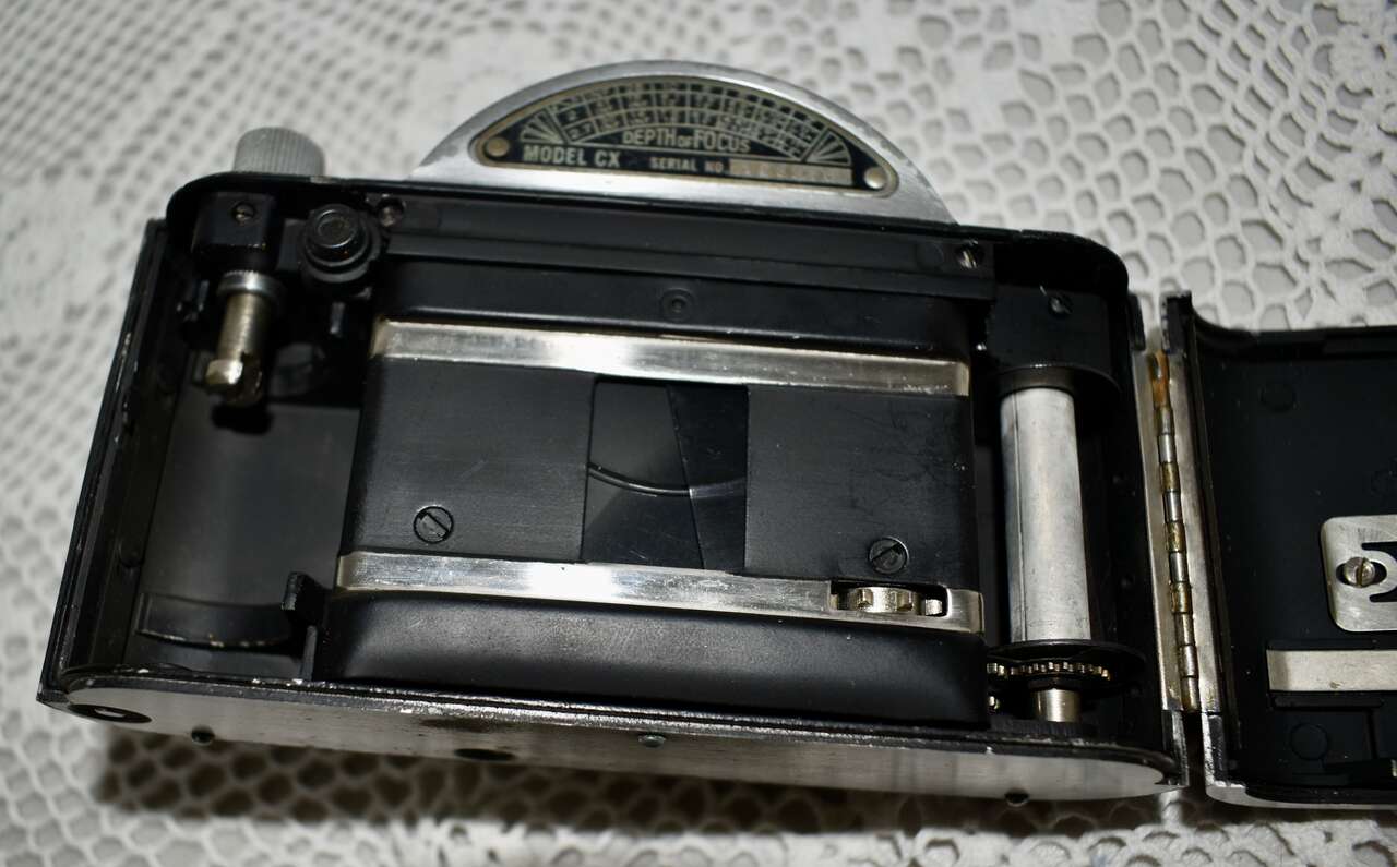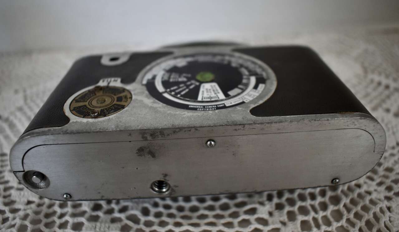 IT MEASURES… The Camera Measures… Approx. 5 3/4 inches wide and 3 1/2 inches tall and it is 2 inches thick measured at the center area. The brown Leather case measures… Approx. 6 1/2 inches wide - 4 inches tall.