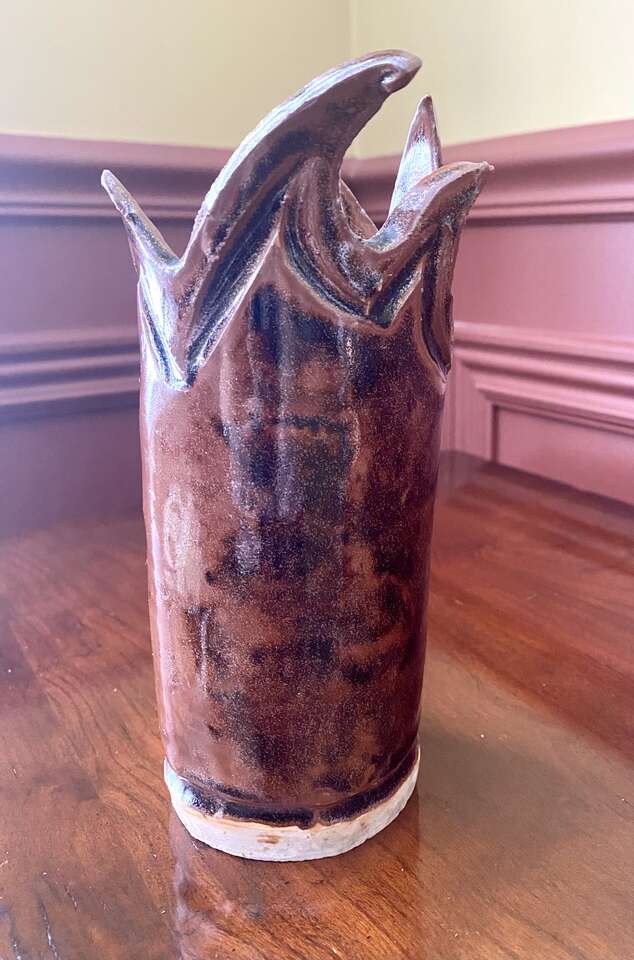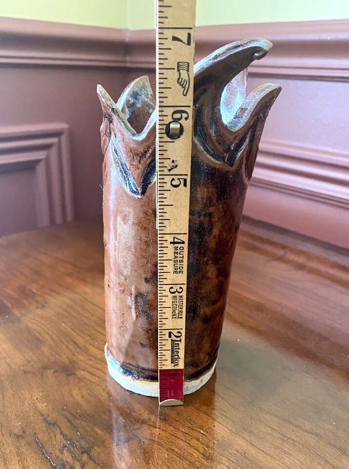 Very Unique Studio Pottery - Signed and Great Colors In Shades Of Brown - See All Photos. I'm unable to make out the signature but I love the artistry of this piece. This is in Like New Condition.