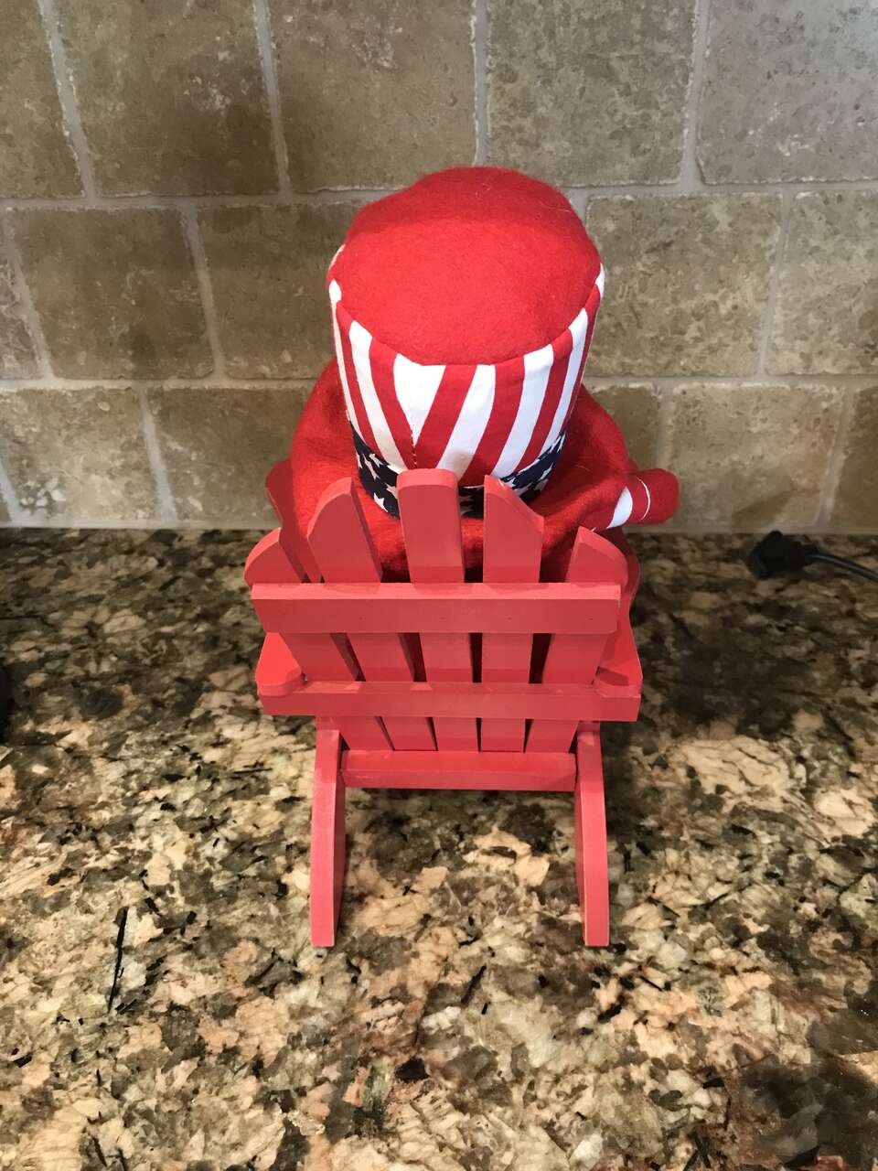 Uncle Sam stuffed animal sitting on a chair - 4th of July Holiday Decoration. This cute decoration with Uncle Sam sitting in the chair is only 10 inches high. I am selling the set for $8.00.