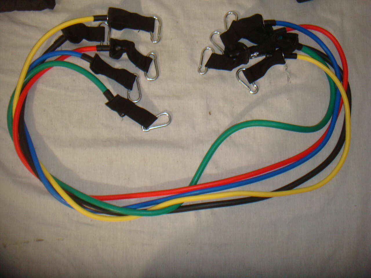 RESISTANCE BAND EXCERCISE 11 PIECE FITNESS KIT WITH POUCH. This is a brand new, never used or opened kit (one was opened for the photos).