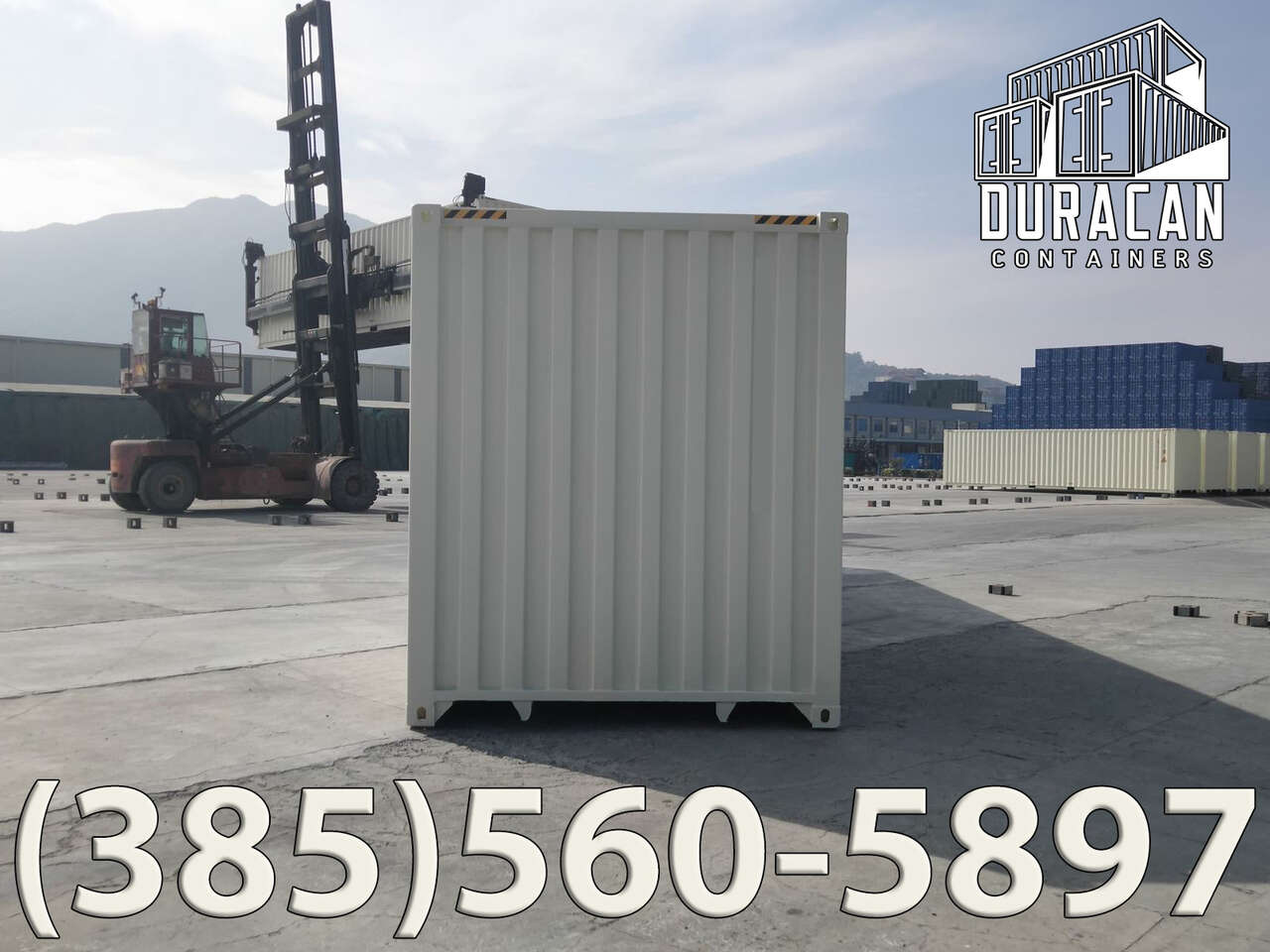This listing is for a New, Single Trip, 40' High Cube Container that measures, 40' long x 8' wide x 9' 6" tall and has a set of doors on one end of the container that seal completely to keep pests, rodents, dust, snow and water out.
