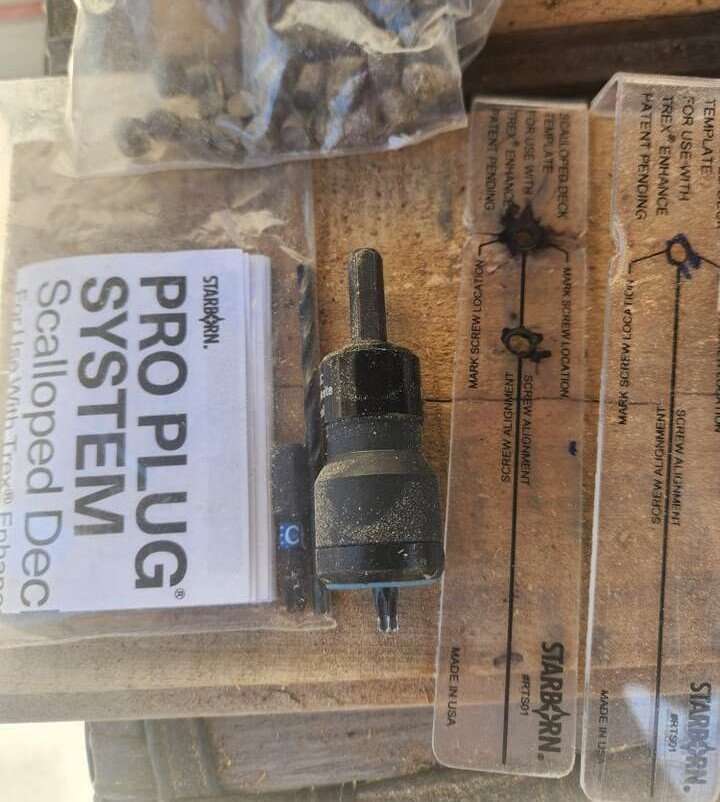 $25 for plug system screw and adapter that counter sinks screws if you want to us the plugs. I have a 10 screws and about 20 plugs harbor grey. Comes with extra torc bit, drill bit and 2 measuring tools.