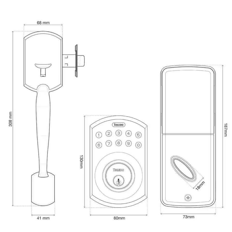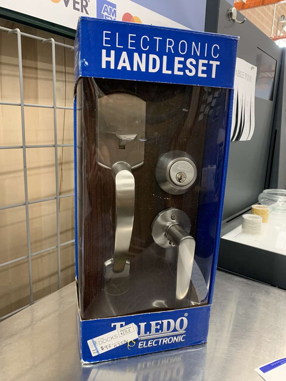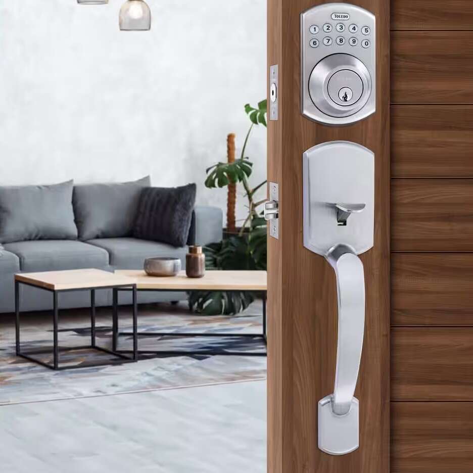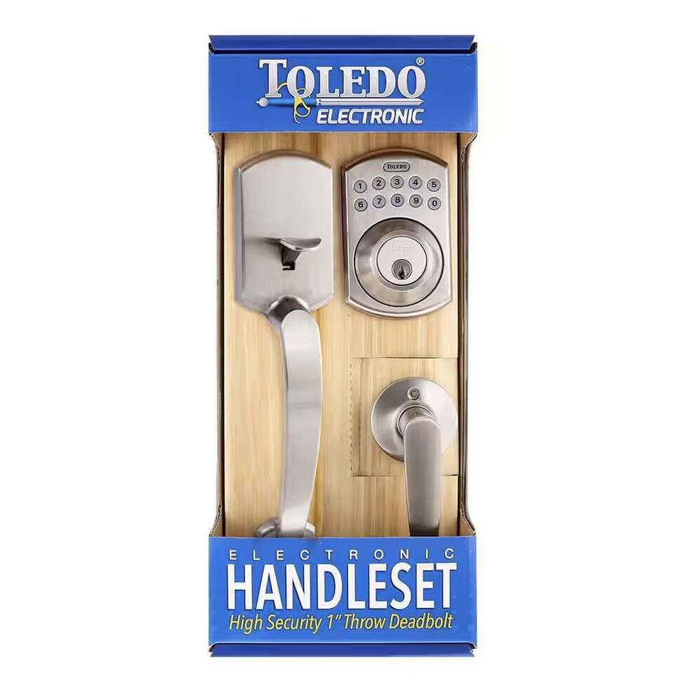 Keep your home secure with this Toledo Electronic Door Handle Set. This durable lock is constructed on stainless steel with an anti-bump system. This electric lock includes two remote controls, three physical keys and you can set up to six user codes.